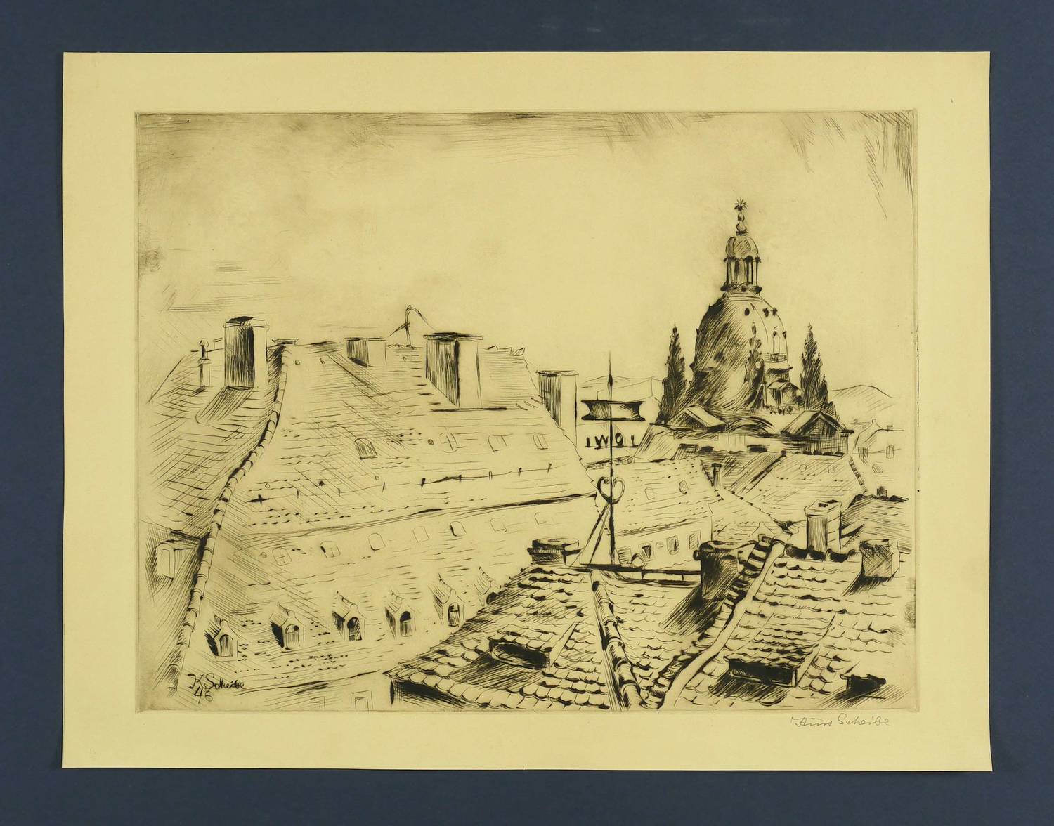 Scheibe, Kurt. – „Blick über die Dächer zur Frauenkirche”.