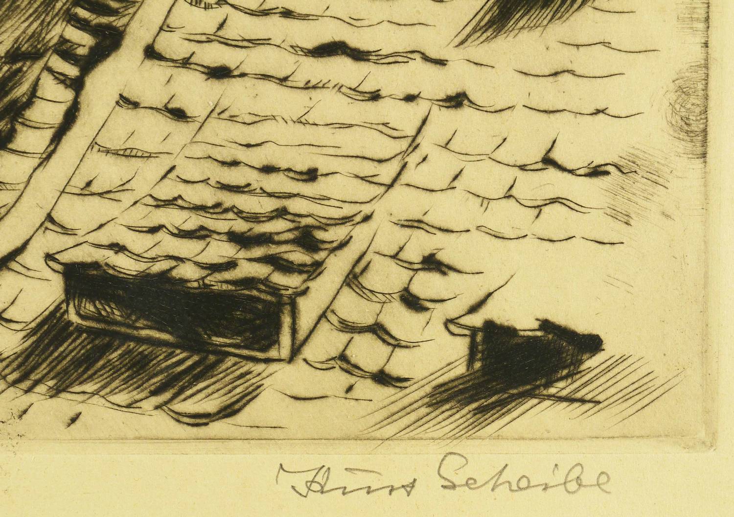 Kurt Scheibe (1891 Chemnitz - 1965 Dresden). Deutscher Grafiker. Schüler der Dresdner Akademie. Im Wesentlichen Autodidakt. Neben Bildnissen entstanden Ansichtenradierungen und Darstellungen des täglichen Lebens. Wirkte in Dresden.