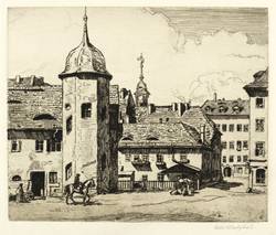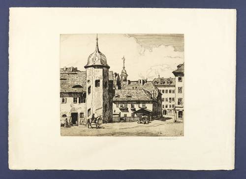 1912. Radierung / Strichätzung, in Schwarzbraun, auf gelbem Kupferdruck. – Originale Künstlergrafik, von Otto Westphal. – 24,0 x 29,0 cm (Darstellung / Platte), 38 x 54 cm (Blatt).