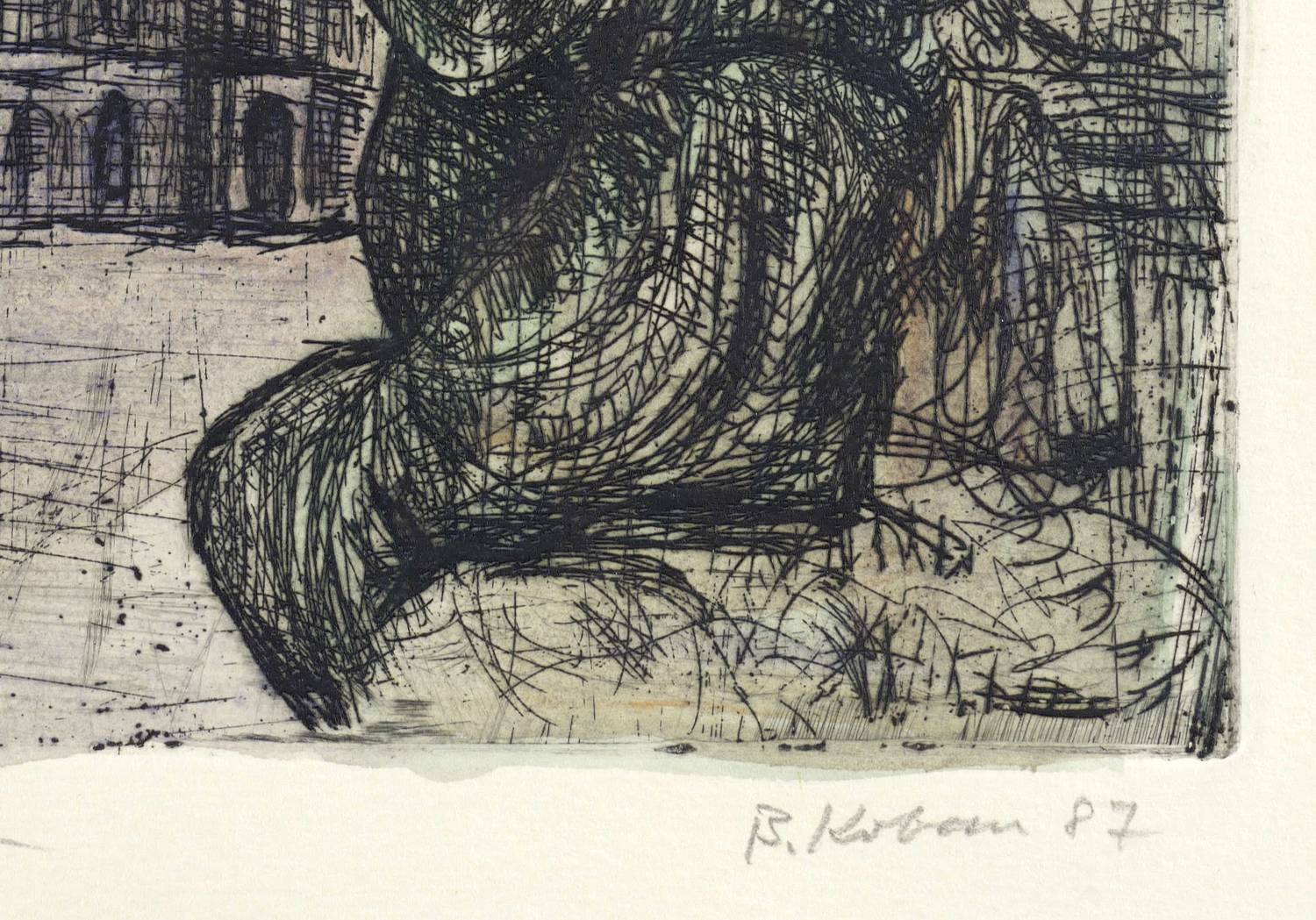 Rechts unten in Bleistift signiert und datiert: ″B. Koban 87″. Links Auflagenbezeichnung. Mittig Titel. – Vom Künstler handkolorierter Druck. – Umlaufend schmaler Rand. Papier geringfügig gewellt. Guter Zustand.