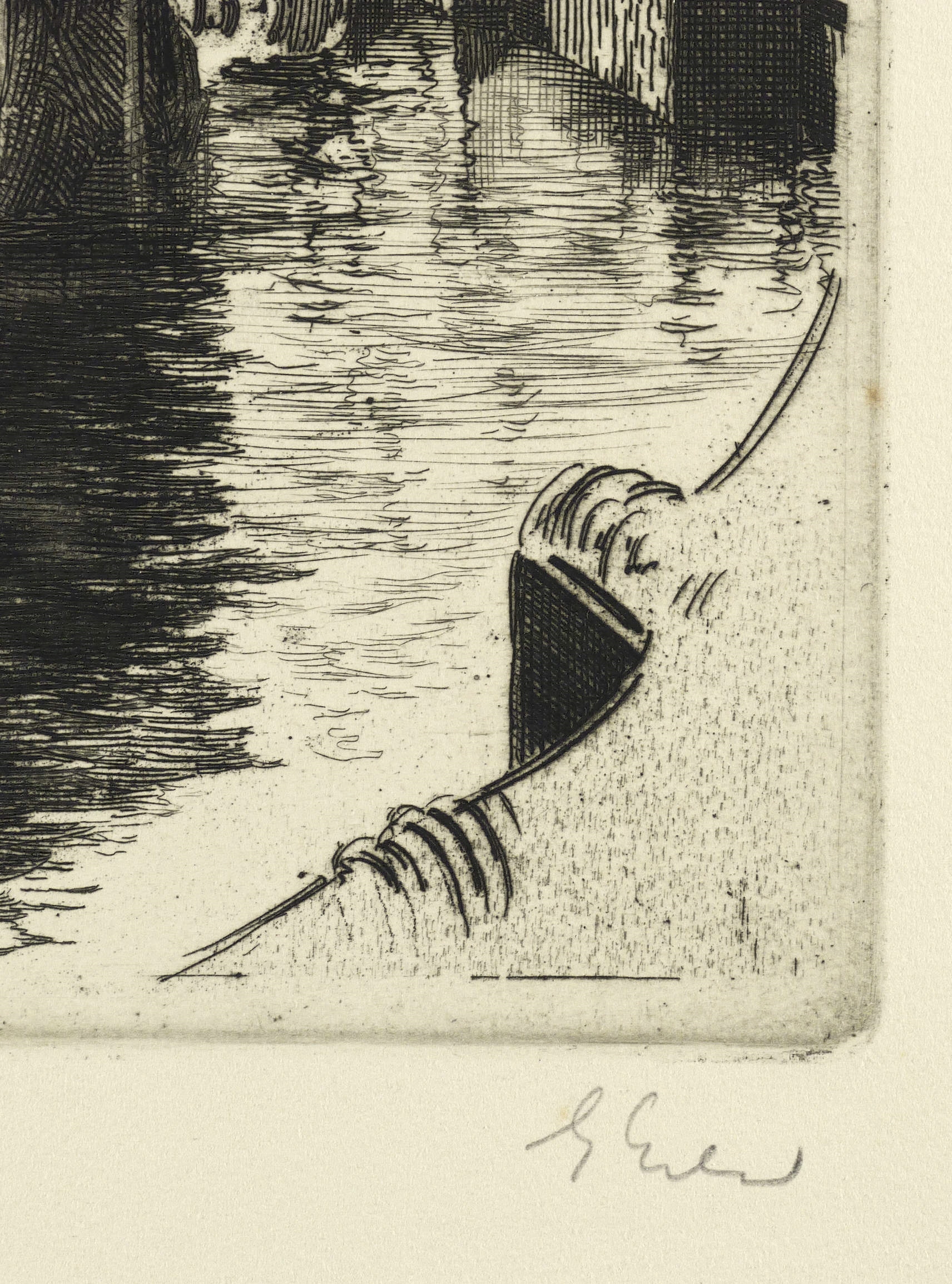 1910-1920. Radierung / Strichätzung, mit zartem Plattenton, in Schwarz, auf gelbem Kupferdruckpapier. – Originale Künstlergrafik, von Georg Erler. – 30,4 x 21,7 cm (Darstellung / Platte), 40 x 34 cm (Blatt).