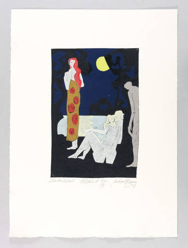 2008. Farbholzschnitt, in 8 Farben, auf hellchamois Hahnemühle-Bütten. – Originale Künstlergrafik, von Michael Hofmann. – Auflage Exemplar Nr. 60/70. – 30,7 x 20,8 cm (Darstellung / Druckstock), 54 x 39 cm (Blatt).