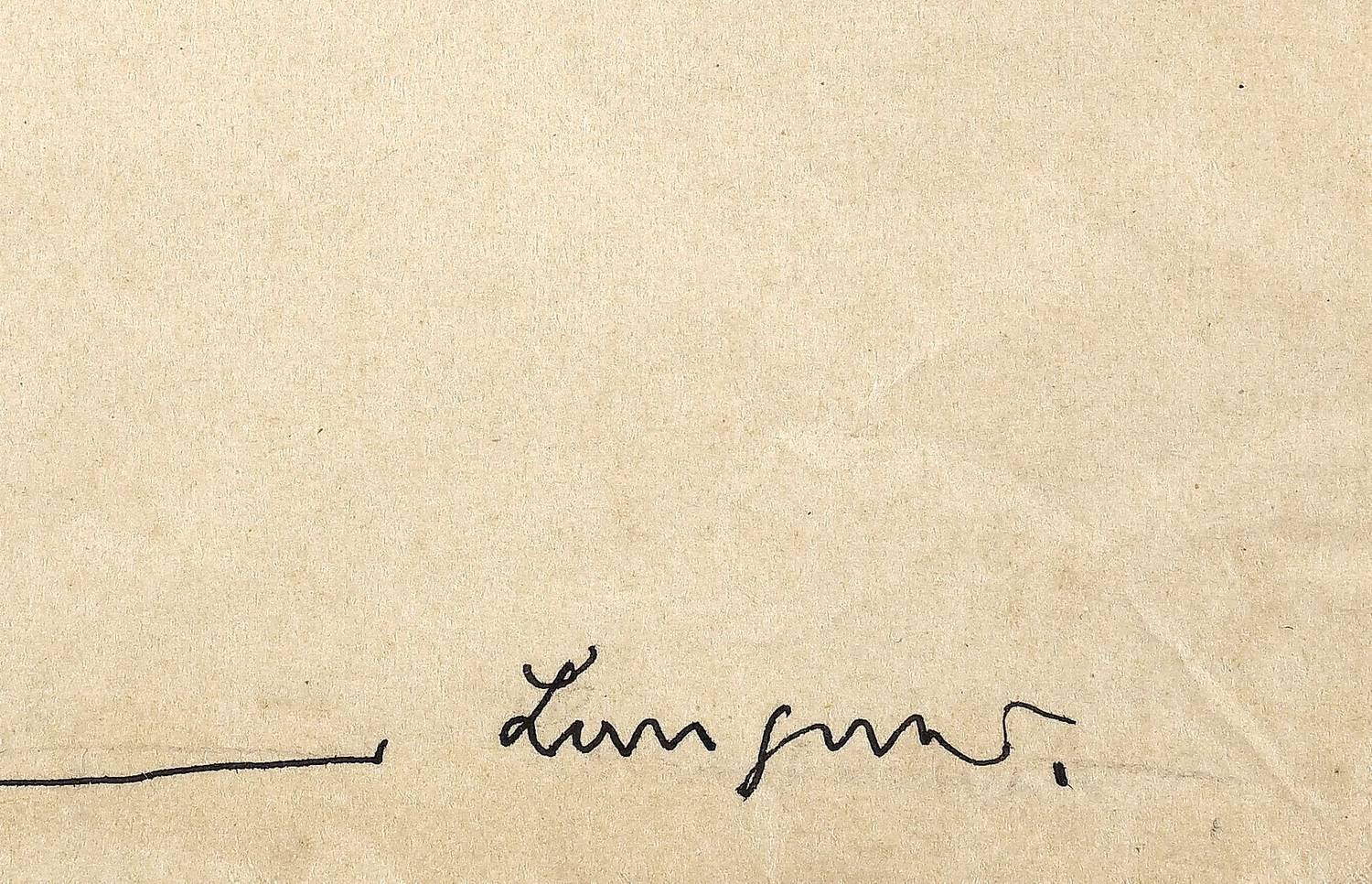 Unten in schwarzer Feder bezeichnet, datiert und signiert. – Original auf Karton aufgesetzt. Papier etwas gewellt und knickspurig. Insgesamt mäßig guter Zustand.