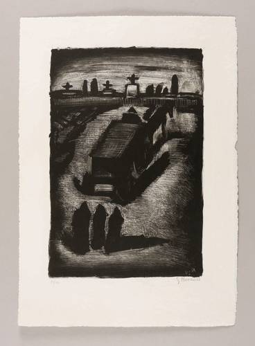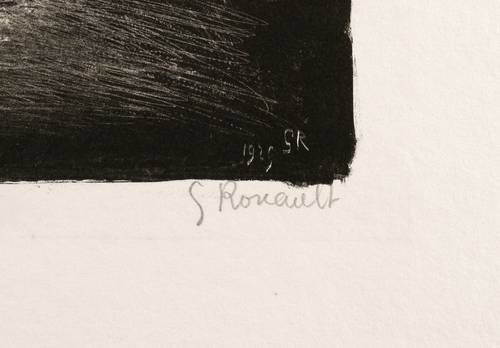 Chapon-Rouault 344. – Recht unten in Bleistift signiert: ″G Rouault″. Links Auflagenbezeichnung: ″74/100″. Im Stein rechts unten Ritzsignatur und Jahr: ″GR 1929″. – Aus einer Folge von sechs Lithografien ″La Petite Banlieue″, 1929 erschienen bei Editions des Quatre Chemins in Paris. – Ausgezeichneter Druck mit vollem Rand. Hervorragender Zustand.