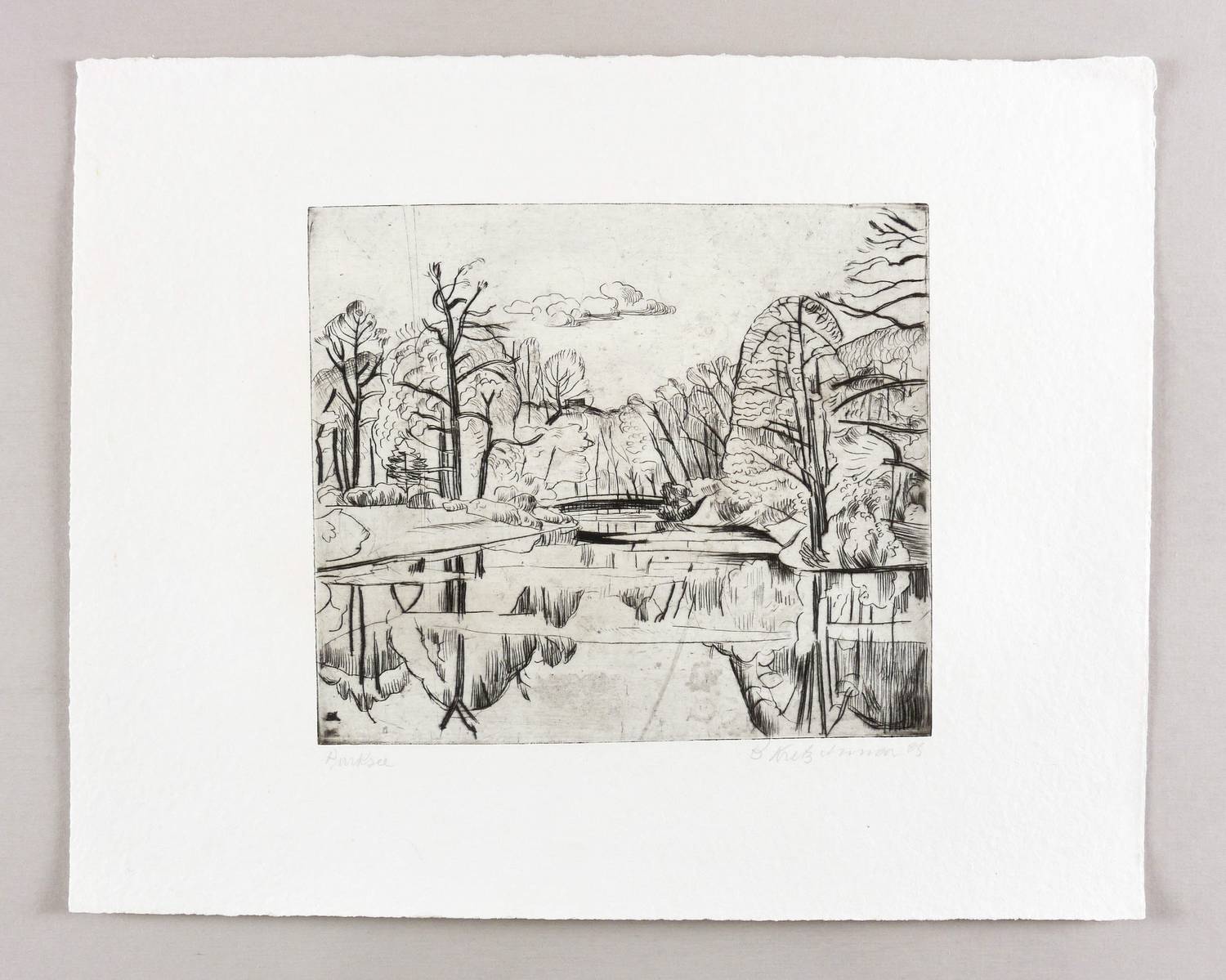 Schmidt-Werner R 134. – Rechts unten in Bleistift signiert und datiert: ″B Kretzschmar 23″. Links Titel: ″Parksee″. – Druck von Alfred Ehrhardt, Dresden. Einer der wenigen bisher bekannten Abzüge im Kupferstichkabinett der Staatlichen Kunstsammlungen Dresden. – Tadelloses originalrandiges Exemplar. Sehr guter Zustand.
