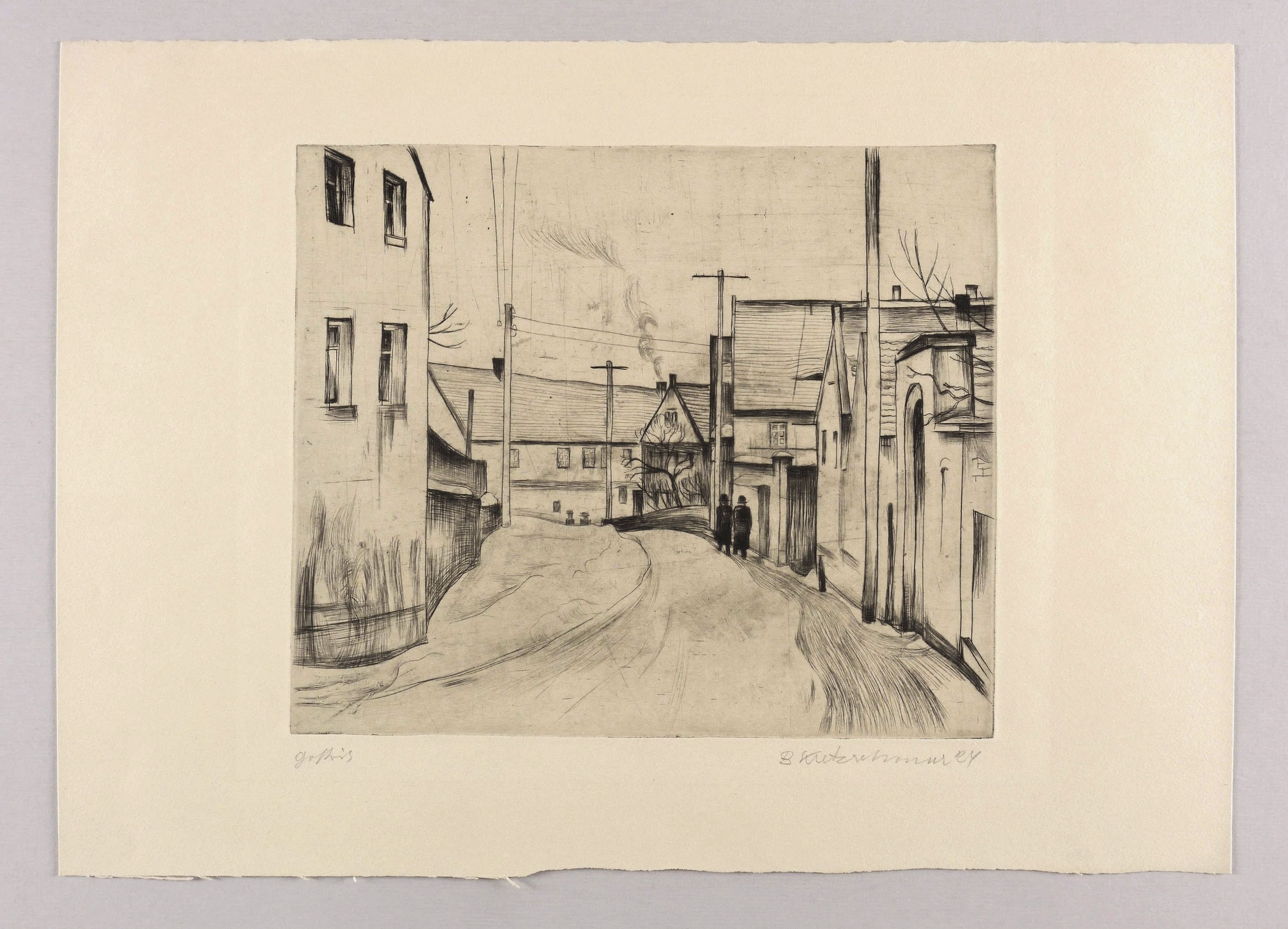 Schmidt R 150 a. – Rechts unten in Bleistift signiert und datiert: ″B Kretzschmar 24″. Links Titel: ″Gostritz″. – Rückseitig unscheinbare Spuren einer älteren Montierung. Tadellos erhalten. Sehr guter Zustand.