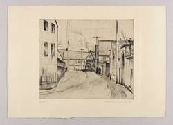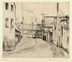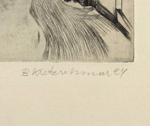 1924. Radierung / Kaltnadel, in Schwarz, auf rauem gelbem Velin. – Originale Künstlergrafik, von Bernhard Kretzschmar. – 24,1 x 28,4 cm (Darstellung / Platte), 34 x 48 cm (Blatt).