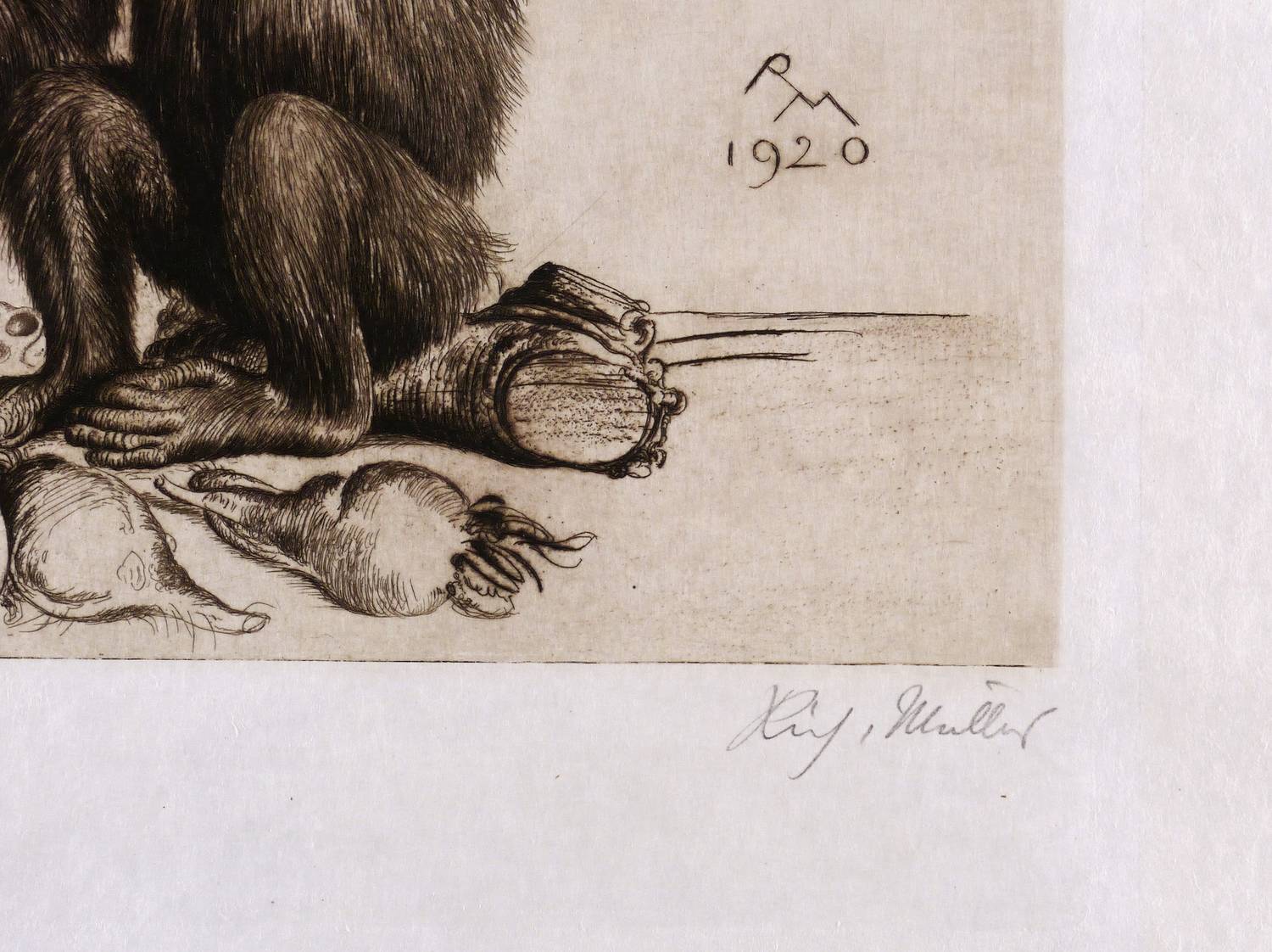 1920. Radierung / Kaltnadel, mit Plattenton, in Schwarzbraun, auf feinstem hellchamois Japan. – Originale Künstlergrafik, von Richard Müller. – 29,3 x 21,8 cm (Darstellung / Druckbild), 33,8 x 22,9 cm (Platte), 50 x 35 cm (Blatt).