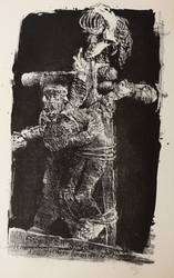 1974. Lithografie / Kreidelithografie, in Schwarz, auf hellchamois Velin. – Originale Künstlergrafik, von Bernhard Heisig. – 46,0 x 28,0 cm (Darstellung / Stein), 50 x 35 cm (Blatt).