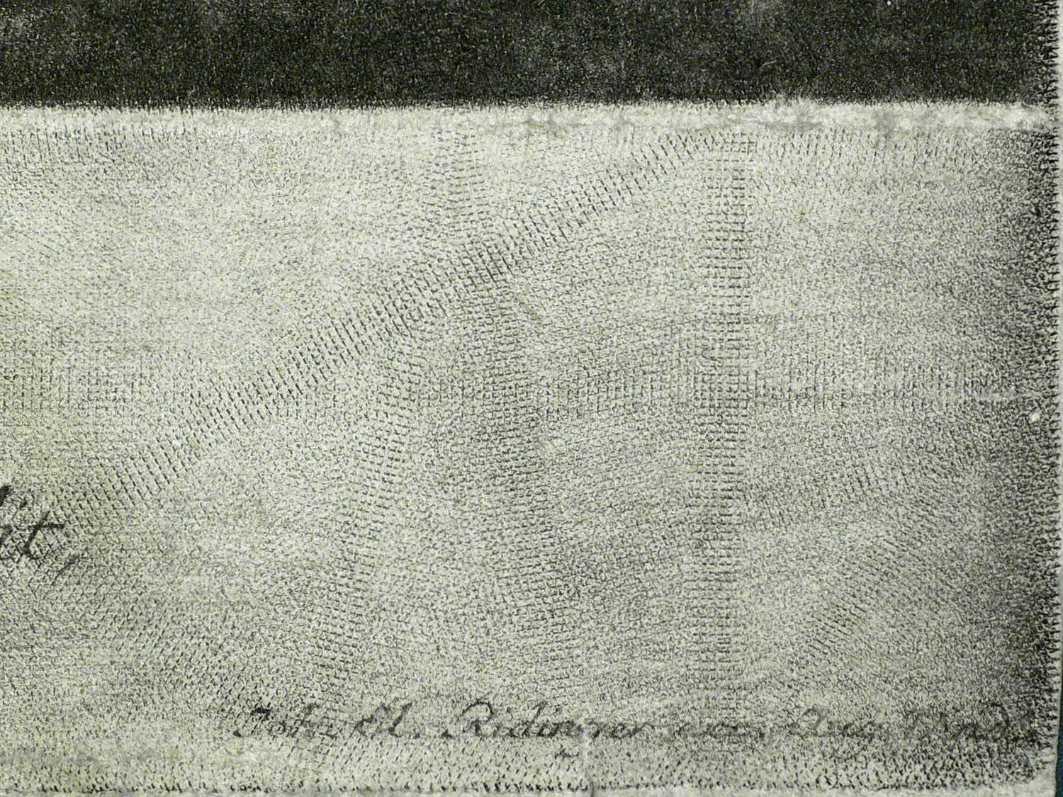 Um 1740. Mezzotinto / Schabkunstblatt, in Schwarz, auf kräftigem Bütten. – Originale Künstlergrafik, von Johann Elias Ridinger. – 42,3 x 54,4 cm (Darstellung / Platte), 43 x 56 cm (Blatt).