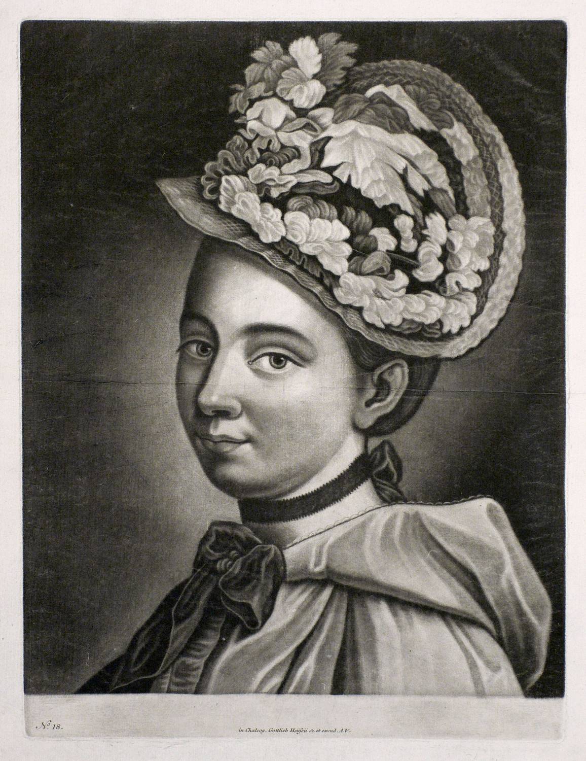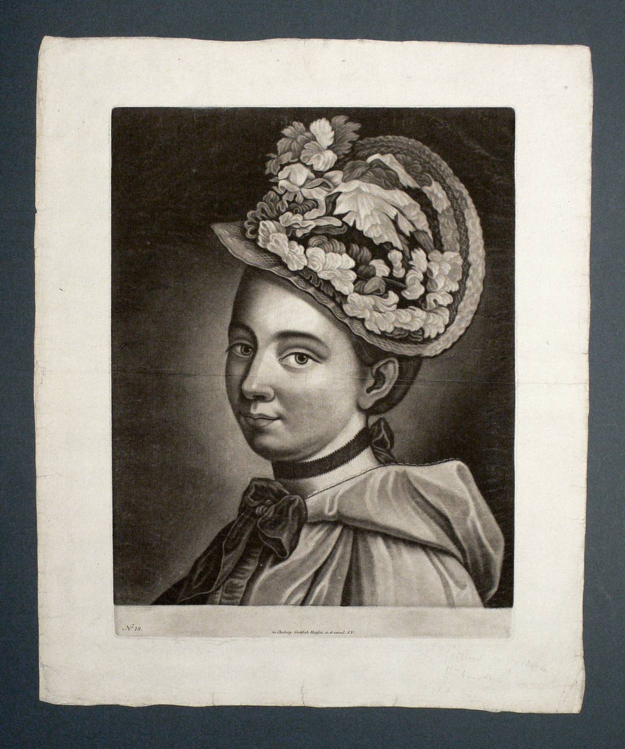 Im unteren Rand der Platte nummeriert ″No. 18″ und signiert: ″in Chalcog. Gottlieb Heissii Sc. et excud. A.V.″ - Nicht ganz deutliches Wasserzeichen ″WALDSL(?)/(..)ZEL(?)″. – Schöner kontrastreicher Abzug. – Breitrandiges Blatt mit ausgelegener bzw. geglätteter horizontaler Mittelfalte. Sonst keine Mängel ersichtlich. Insgesamt guter Gesamteindruck.