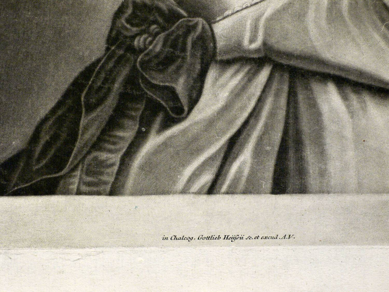 Um 1710. Mezzotinto / Schabkunstblatt. – Originale Künstlergrafik, von Gottlieb Heiss. – 42,1 x 32,0 cm (Darstellung / Platte), 53 x 44 cm (Blatt).