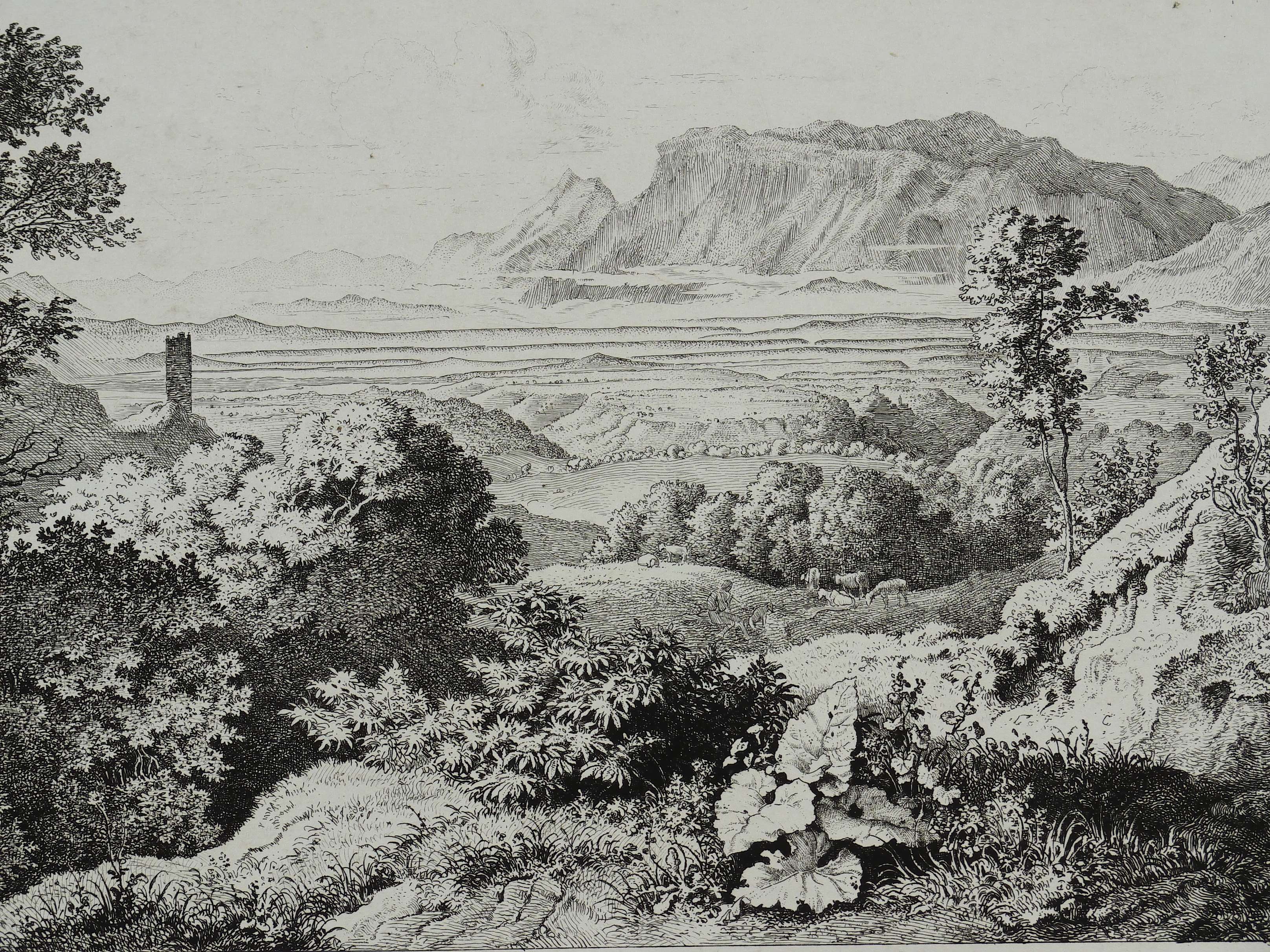 1829. Radierung / Strichätzung, auf Velin. – Originale Künstlergrafik, von Adrian Ludwig Richter. – 15,9 x 22,8 cm (Darstellung), 23,9 x 28,9 cm (Platte), 34,5 x 54,5 cm (Blatt).