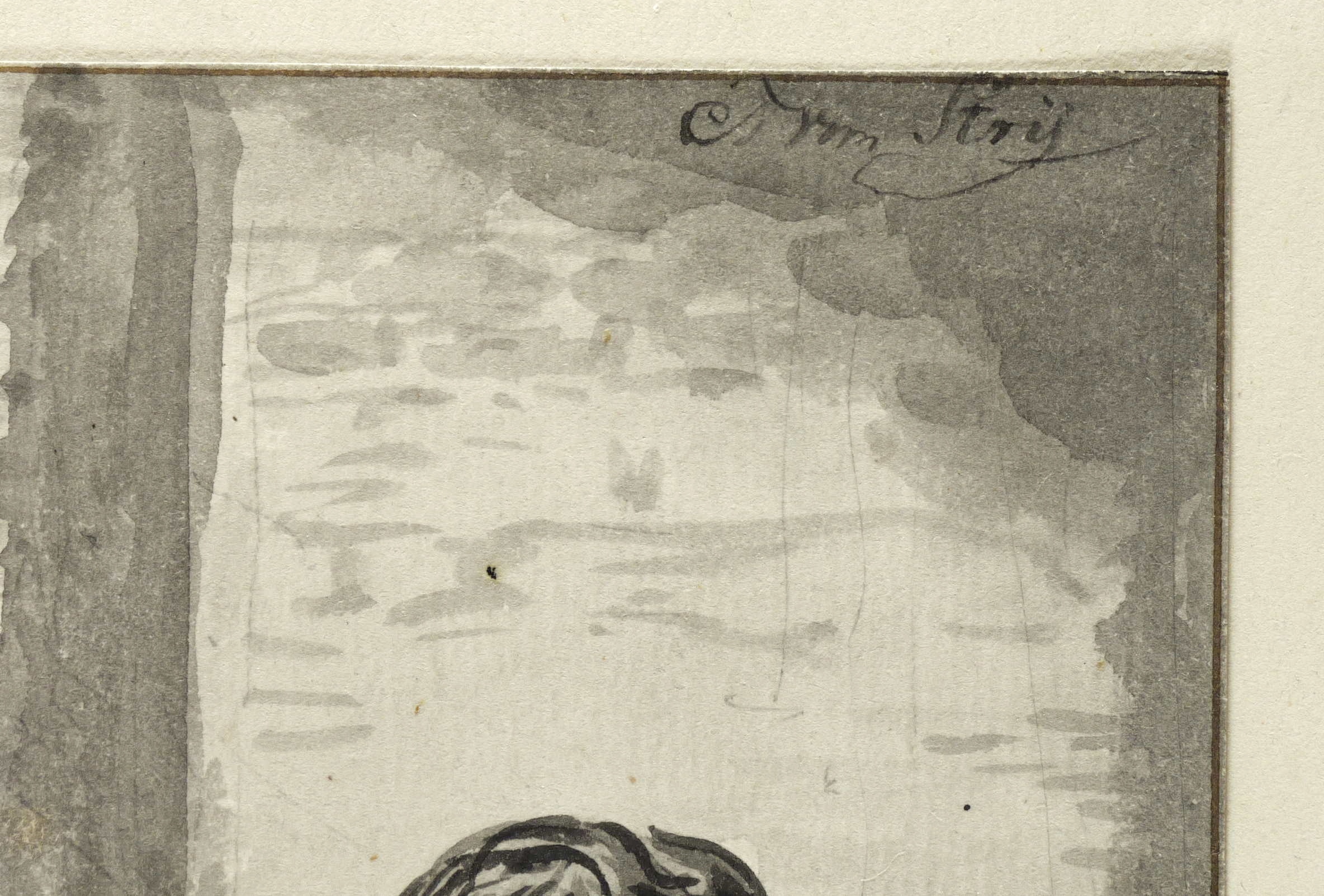 1790-1810. Zeichnung / Pinselzeichnung, in schwarzer Tusche, grau laviert, auf Büttenpapier. – Originale Künstlergrafik, von Abraham van Stry. – Unikat. – 17,7 x 14,0 cm (Darstellung / Einfassungslinie), 29,5 x 25,5 cm (Trägerblatt).