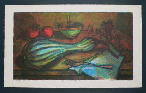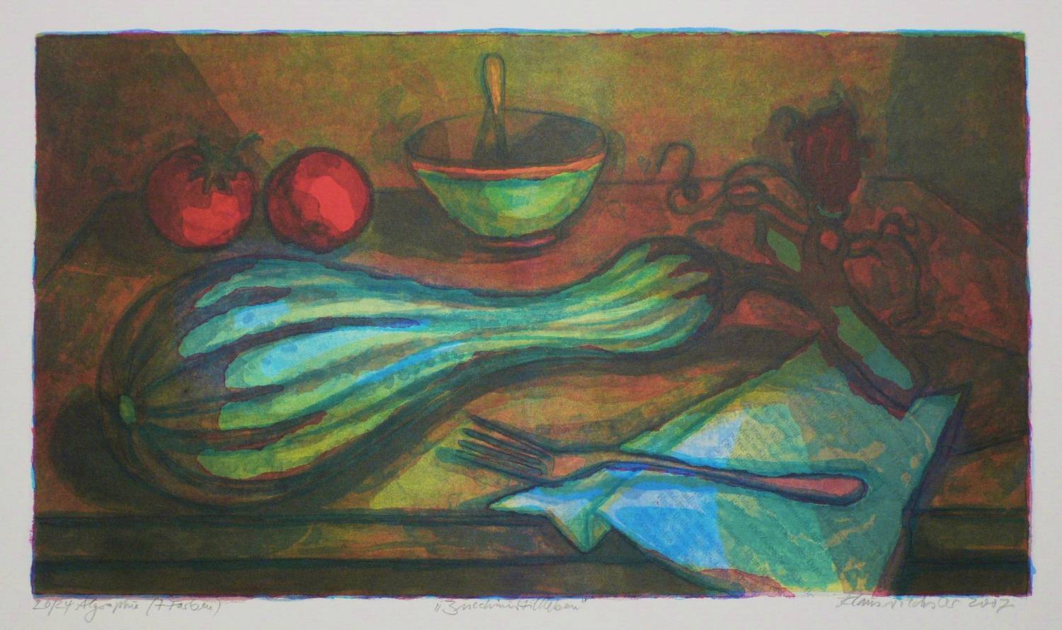 2007. Farbalgrafie, in 7 Farben, auf Büttenpapier. – Originale Künstlergrafik, von Klaus Drechsler. – Auflage Exemplar Nr. 20/24. – 38,9 x 68,2 cm (Darstellung), 47,5 x 78 cm (Blatt).