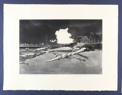 Wolfgang Werkmeister (*1941 Berlin, lebt und arbeitet in Hamburg). Deutscher Grafiker, bedeutender Vertreter der zeitgenössischen Radierkunst. 1960-64 Besuch der Akademie der Bildenden Künste Stuttgart, Fachklasse für freie Grafik und Illustration bei Gunther Böhmer. 1965 Besuch der Fachhochschule für Gestaltung Hamburg bei W. M. Busch und S. Oelke. 1966-68 tätig als Pressezeichner. 1972/73 Dozent an der Fachhochschule für Gestaltung, Hamburg. Zahlreiche Auslanfsaufenthalte und Stipendien in Marokko, USA, auf den Kanarischen Inseln, etc. 2001 Kunstpreis der Stadt Baden-Baden. Zentrales Ausdrucksmittel ist die Radierung, genauer die Aquatinta, in der er Landschaft als Hauptmotiv regelrecht zelebriert und in technisch ebenso aufwändigen wie raffinierten Blättern druckgrafisch umsetzt. Stilistisch siedelt sein Werk zwischen einem geschickt eingesetzten Fotorealismus und der lakonischen Bildsprache eines Ansel Adams.