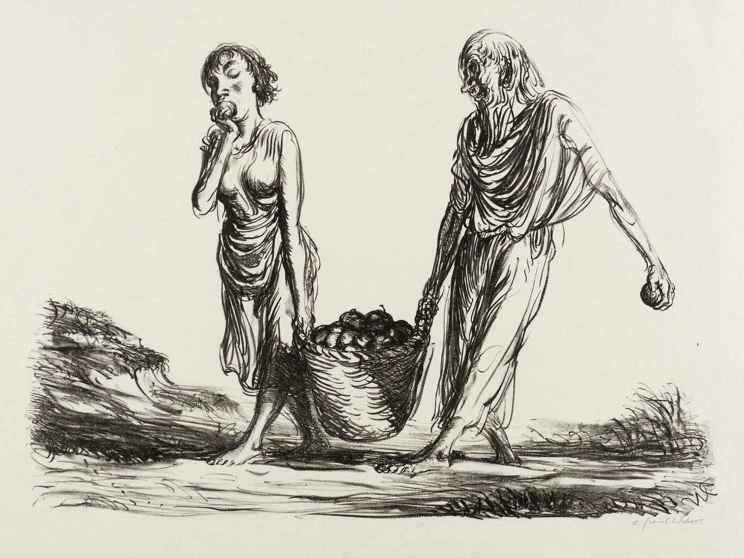 Arp 46. – Rechts unten in Bleistift signiert: ″A. Paul Weber.″ Wasserzeichen der Hahnemühle. – Originalrandig. Oben etwas knickspurig. Gutes Exemplar.
