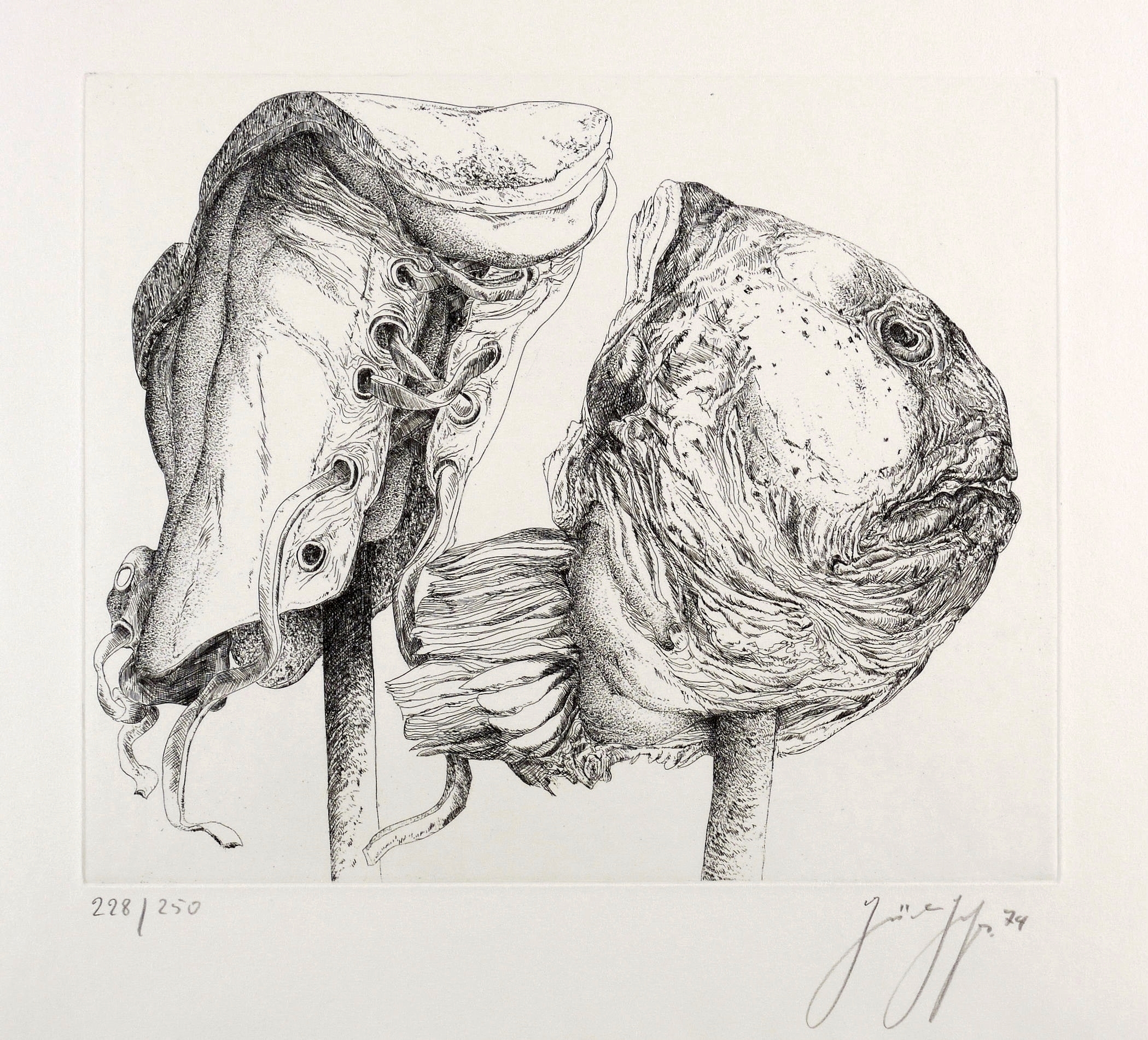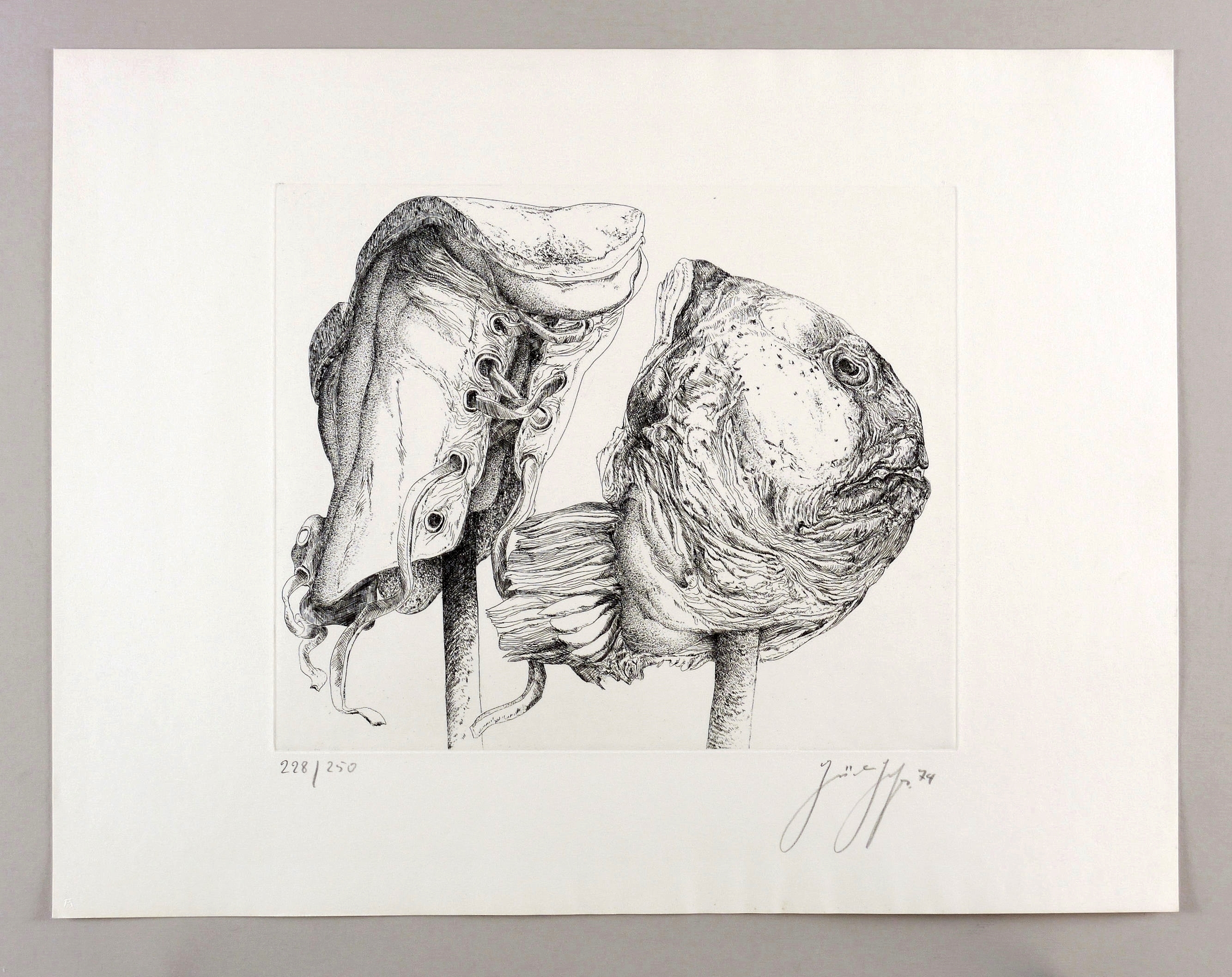 1974. Radierung / Strichätzung, in Schwarz, auf festem hellchamois Velin. – Originale Künstlergrafik, von Günter Grass. – Auflage Exemplar Nr. 228/250. – 32,8 x 39,4 cm (Darstellung / Platte), 50 x 65 cm (Blatt).