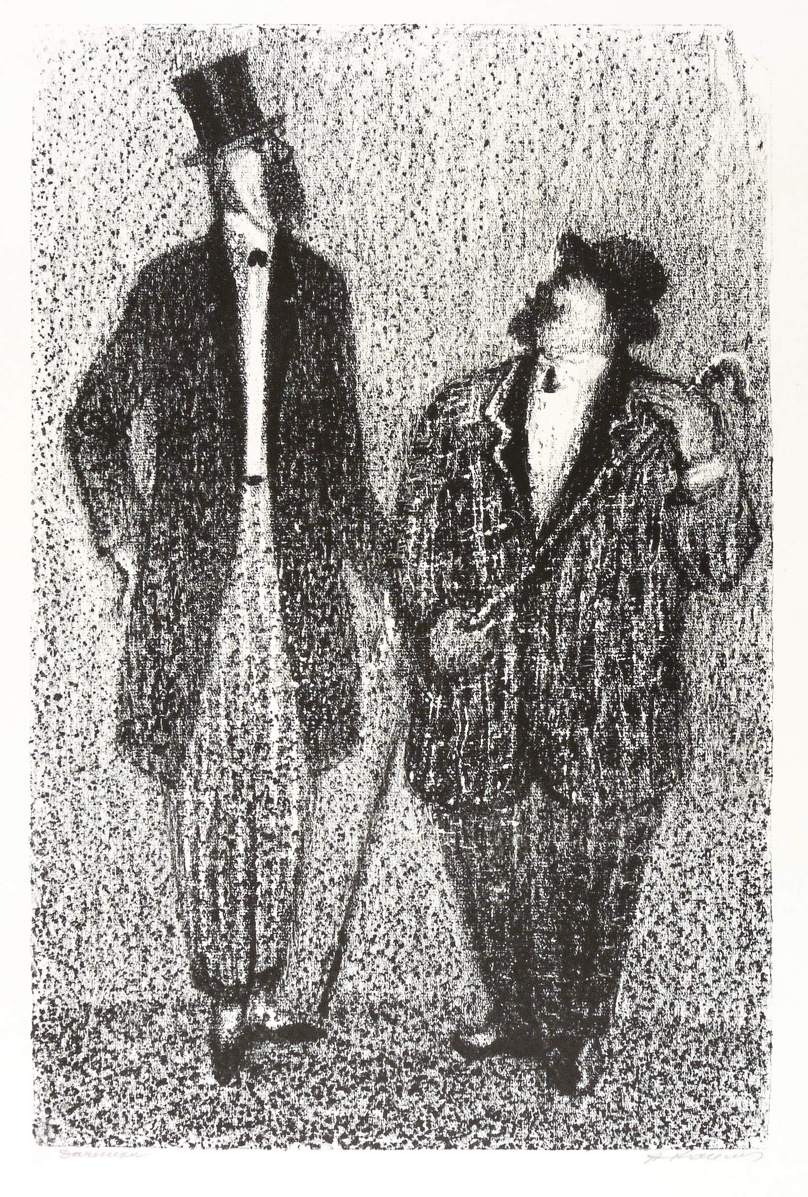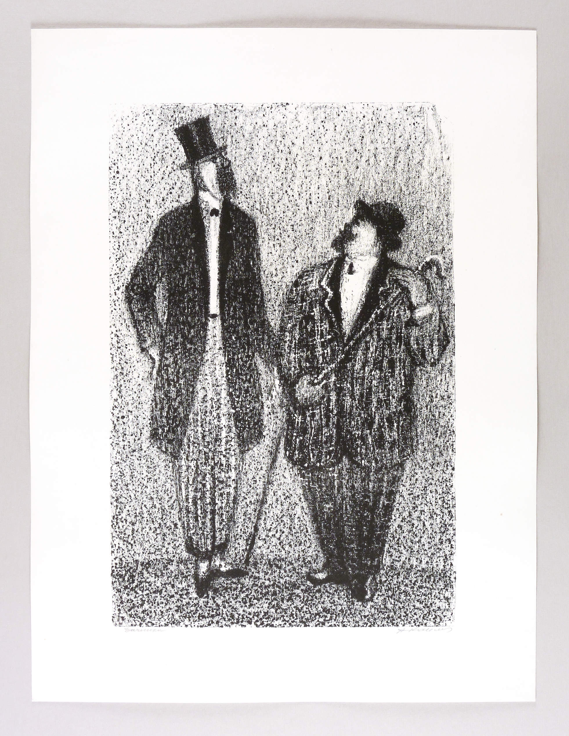 Mayer-Strodt V 39. – Rechts unten in Bleistift kyrillisch signiert und datiert: ″АКаплан″. Links betitelt: ″Дачники″. – Abzug außerhalb der Auflage von 125 Exemplaren zum lithografischen Mappenwerk ″Tewje, der Milchmann″ zu Scholem Alejchem (Moskau: Sovetskij Chudoznik 1961/1966). Druck wohl in Leningrad. - Die etwas spätere Edition als illustriertes Buch (Dresden: Verlag der Kunst 1967) wurde als ″Schönstes Buch der DDR 1967″ ausgezeichnet. - Der vermögende Lebemann Arontschik umwirbt Sprinze, die vierte Tochter Tewjes, wird jedoch von Mutter und Onkel von der nicht standesgemäßen Verbindung abgehalten, was zum Freitot der Sprinze führt. - Seltenes Blatt. – Sehr guter Zustand.