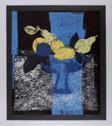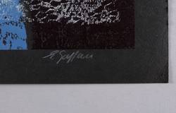 Rechts unten in Bleistift signiert: ″E. Gassan″. Links Technikbezeichnung: ″Linolschnitt″. Mittig Titel: ″Stilleben in blau″. – Sehr gut erhaltenes Blatt. Ohne Mängel. Sehr guter Zustand.