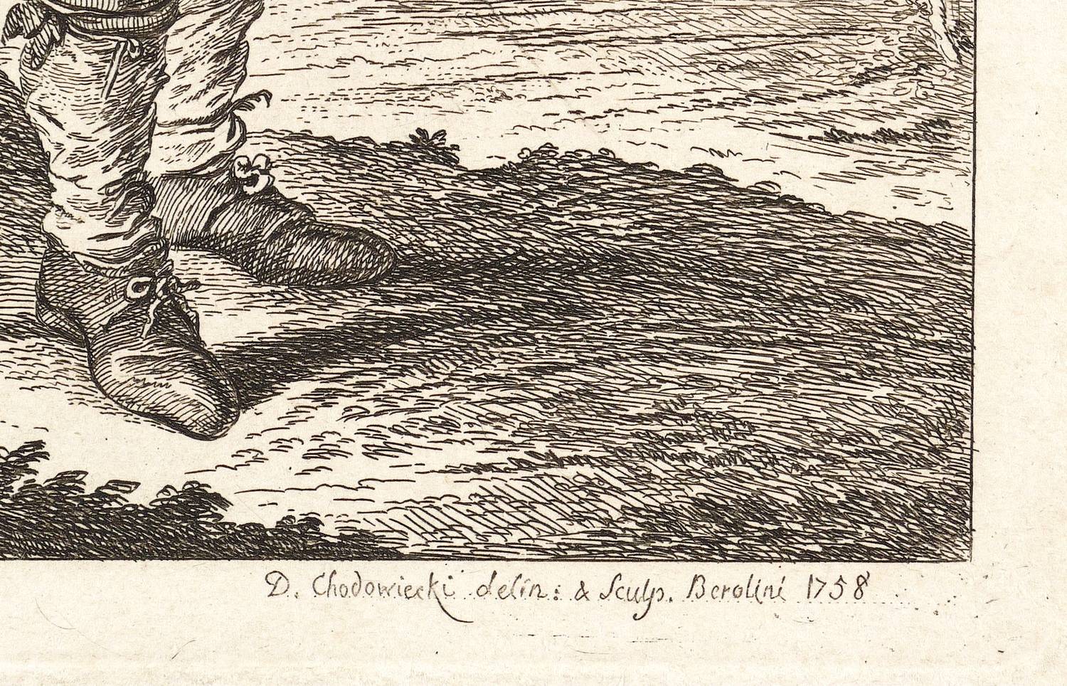 1758. Radierung / Strichätzung, in Schwarz, auf kräftigem Bütten. – Originale Künstlergrafik, von Daniel Nikolaus Chodowiecki. – 13,2 x 10,1 cm (Darstellung / Einfassungslinie), 14,4 x 11,3 cm (Platte), 19 x 15 cm (Blatt).