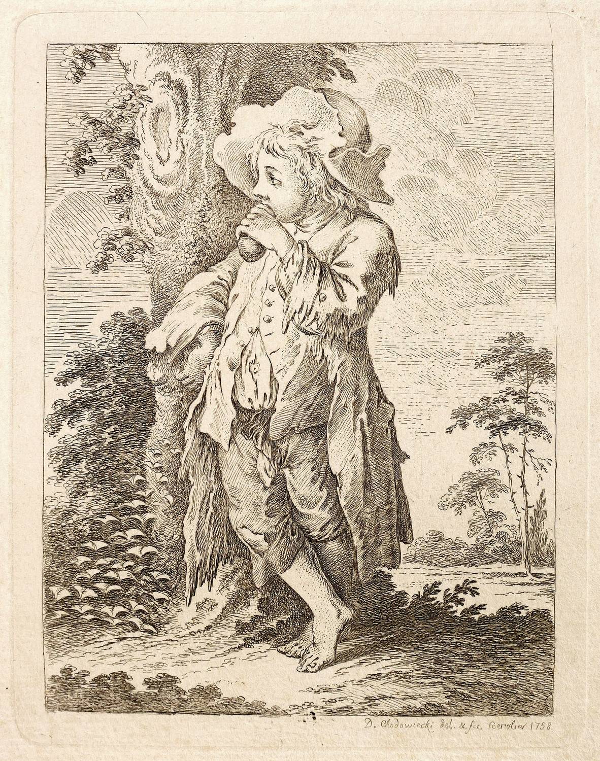 Chodowiecki, Daniel Nikolaus. – „Der Betteljunge bei dem Baume”.