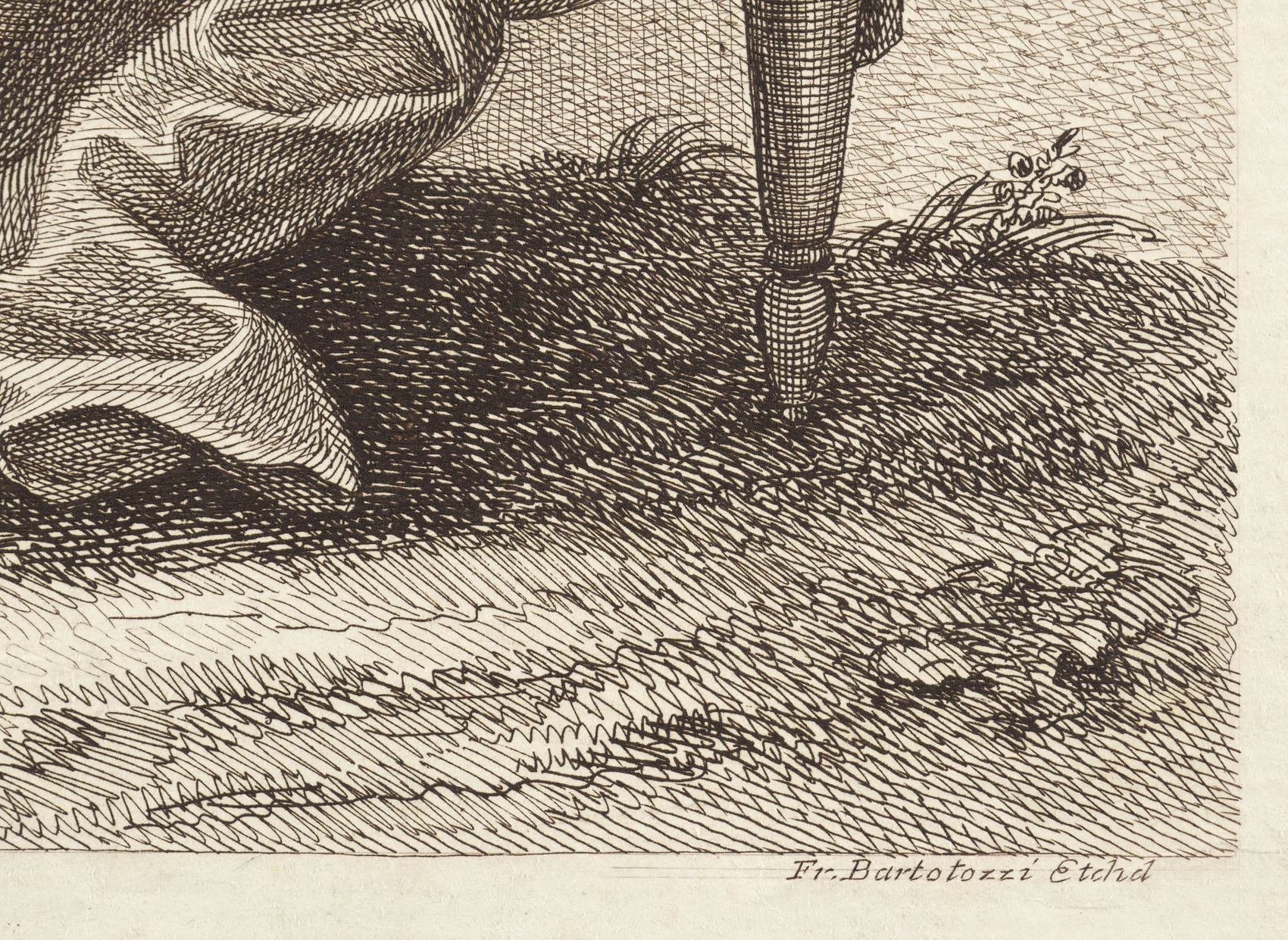 1787. Radierung / Strichätzung, in Schwarz, auf Büttenkarton. – Originale Künstlergrafik, von Francesco Bartolozzi. – 29,5 x 21,8 cm (Darstellung), 33,2 x 23,4 cm (Platte), 33,7 x 23,9 cm (Blatt).