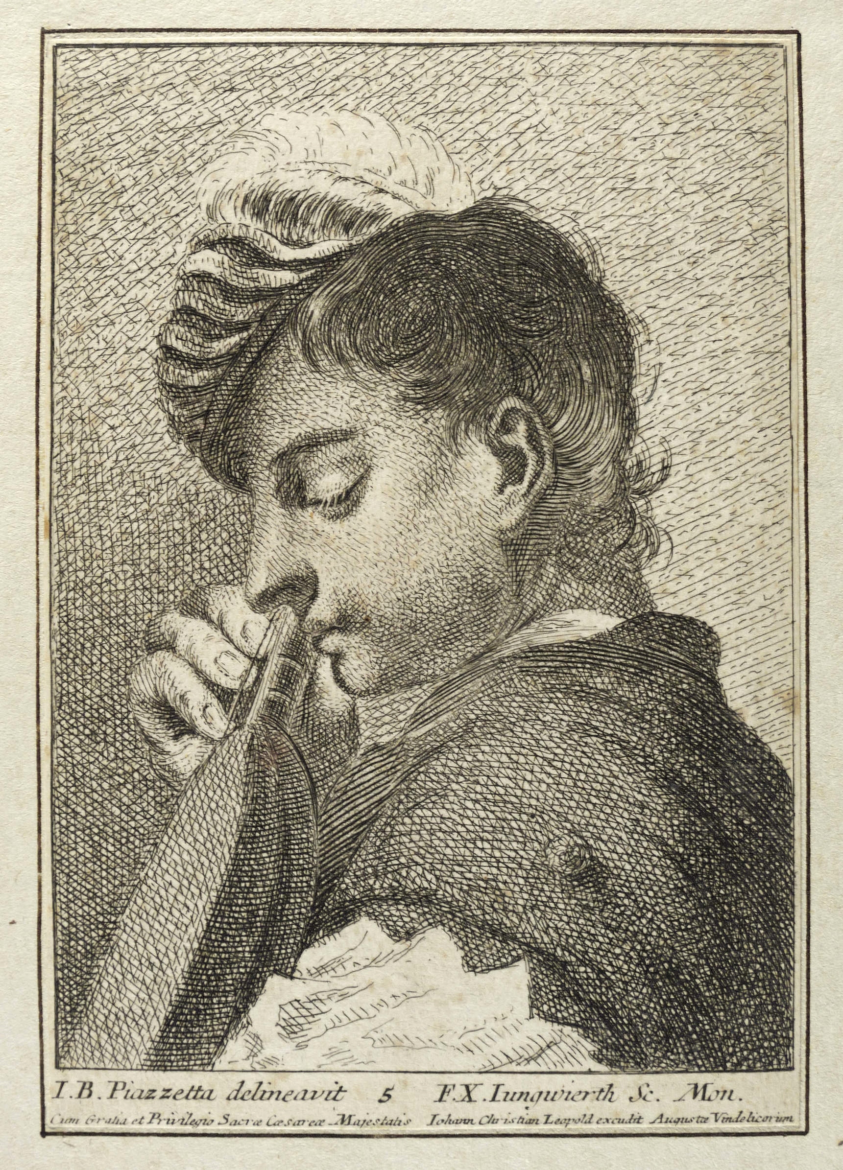 Jungwirth, Franz Xaver. – Köpfe nach Piazzetta. – „Junger Mann mit Laute”.