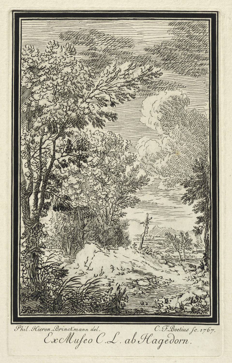 1767. Radierung / Strichätzung & Kaltnadel, in Schwarz, auf Büttenkarton. – Originale Künstlergrafik, von Christian Friedrich Boetius. – 18,8 x 12,4 cm (Darstellung / Einfassungslinie), 20,8 x 12,9 cm (Platte), 29 x 21 cm (Blatt).
