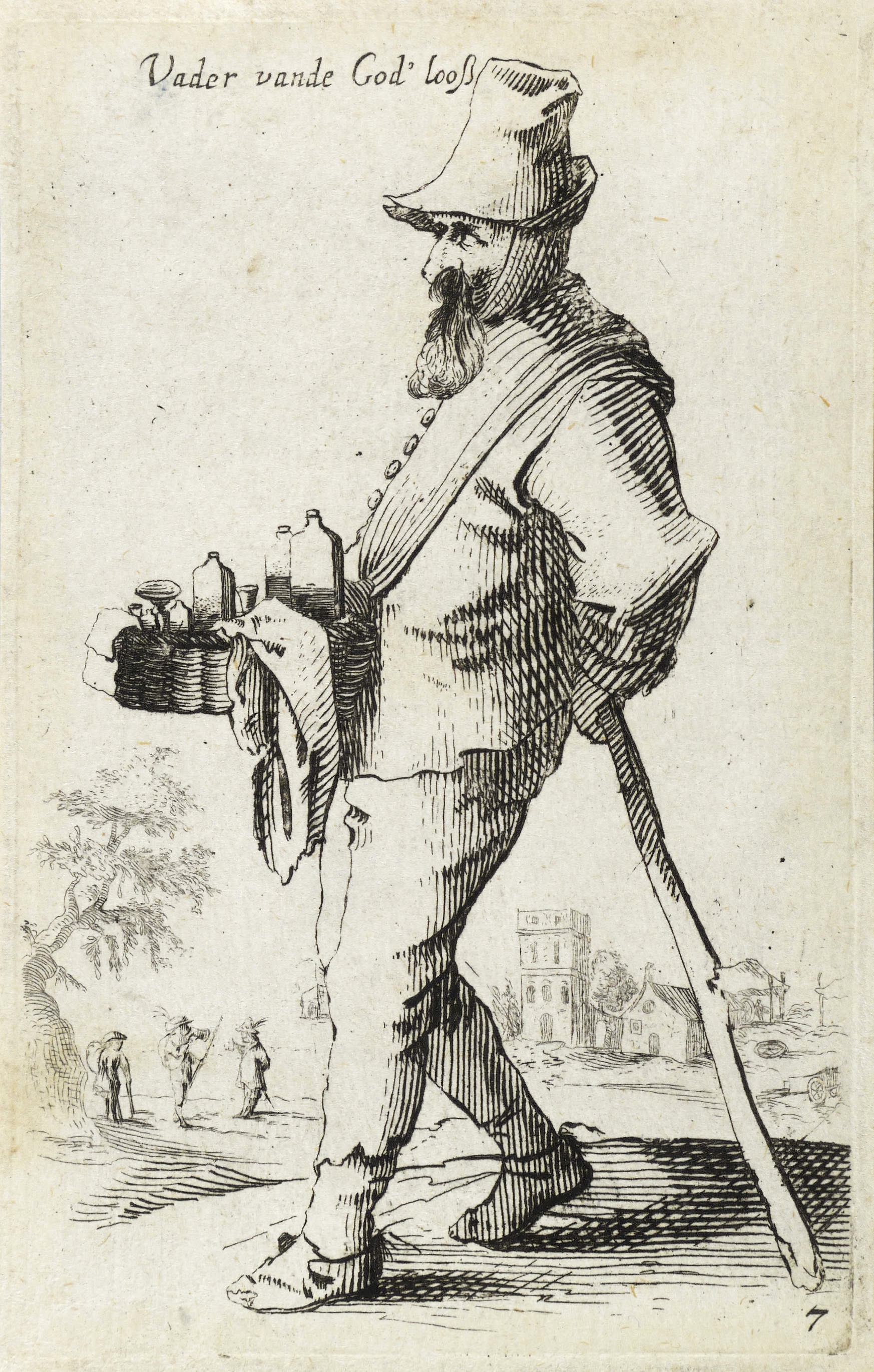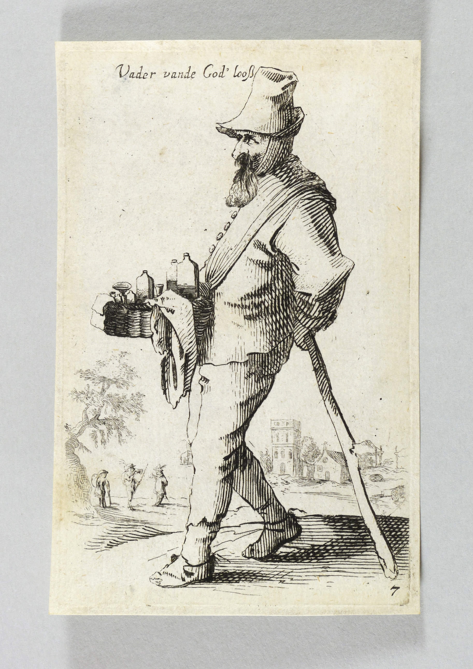 Hollstein German 39. – In der Platte links oben bezeichnet: ″Vader vande God'looß″. Rechts unten nummeriert: ″7″. – Aus der Folge von 12 Blättern ″T'leven der boeren″ nach Pieter Jansz Quast (inkl. Titelblatt, Eigenverlag Christoph Schmidt in Augsburg, datiert 1673). Kopien dieser offenbar sehr beliebten Bauern-Serie des Pieter Jansz Quast (etwa 1630-40) wurden auch von Salomon Savery und Georg Christoph Kilian gestochen und verlegt. – Mit schmalem Rändchen um die Platte. Guter Zustand.