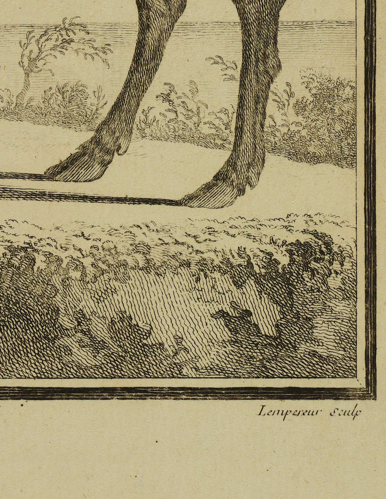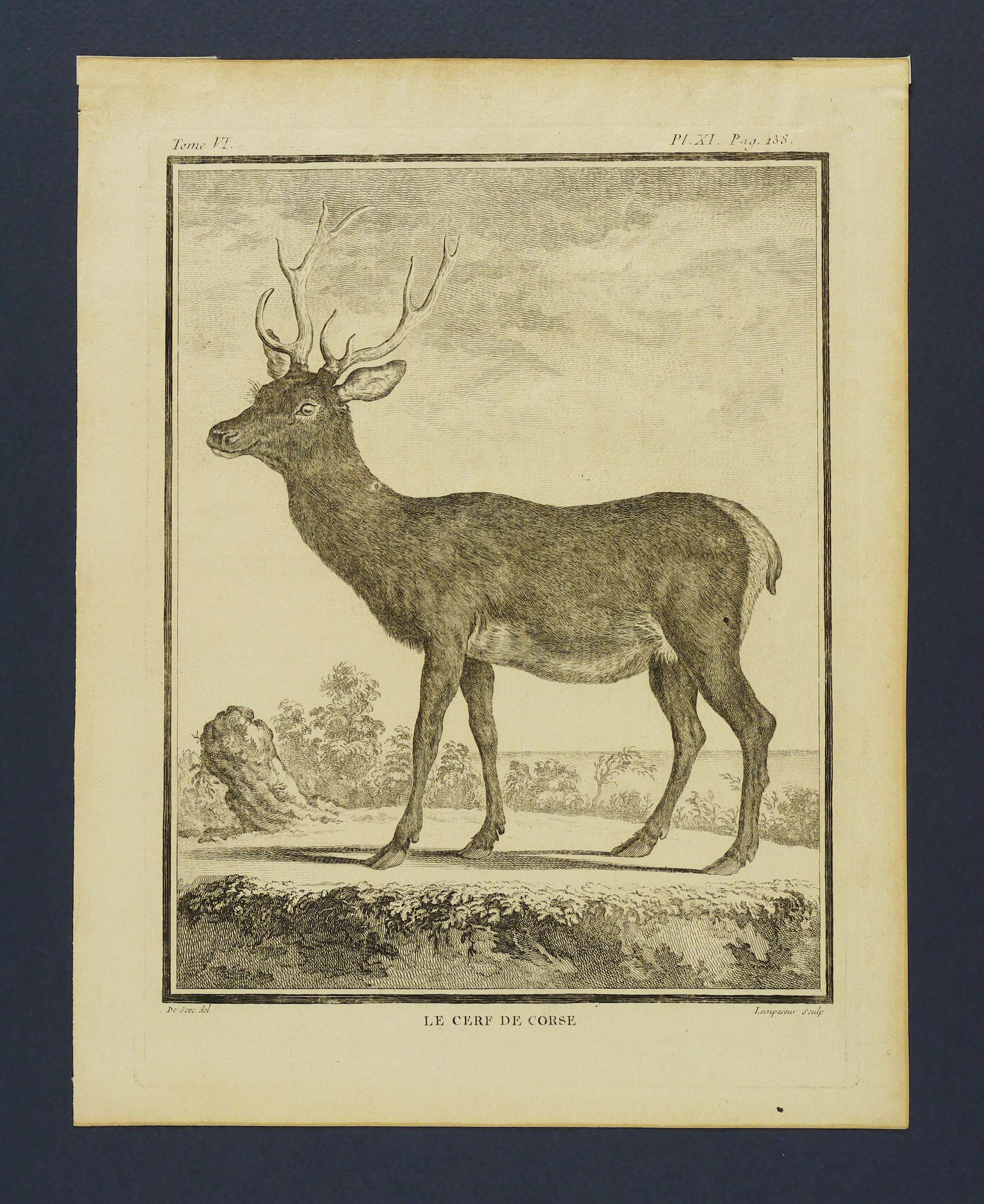 Aus: Georges Louis Le Clerc de Buffon, Histoire naturelle, générale et particulière (Paris: l'Imprimerie royale 1749-1789). – Außerhalb der Platte mit gestochener Schrift rechts unten "Lempereur Sculp." und links "De Seve del." sowie mittig betitelt. Oben rechts bezeichnet "Pl. XI Pag. 138" und links "Tom. VI." – Papier am Blattrand stärker gebräunt. Insgesamt leicht angeschmutzt und etwas berieben. Blattrand leicht knickspurig. Verso Reste einer ehemaligen Montierung. Noch guter Gesamtzustand.