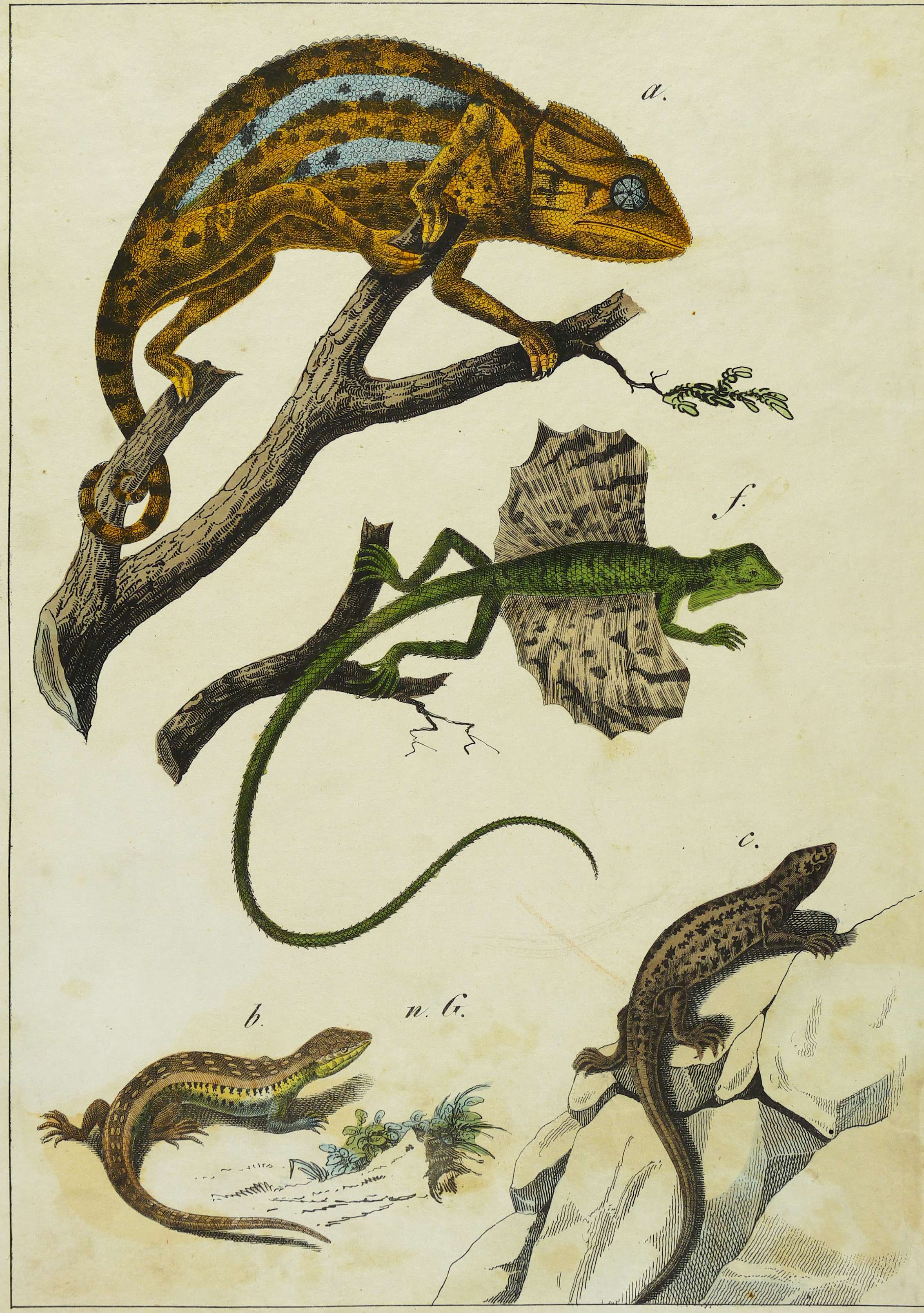 Reptilien. - Echsen. – Chamäleon, Flugdrachen (Draco) & Eidechsen. – Schubert.