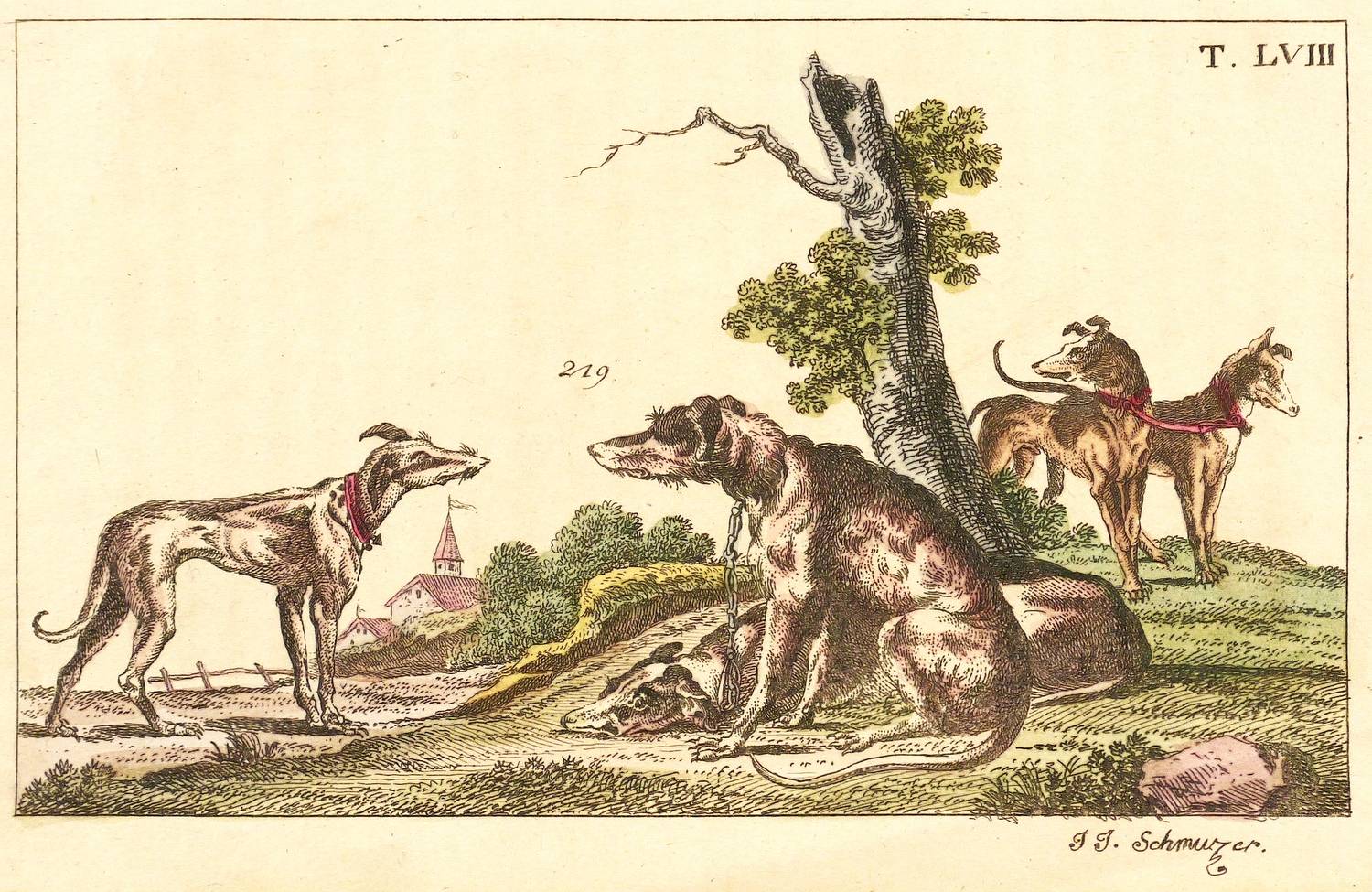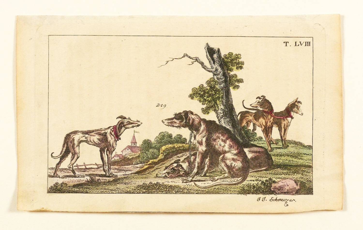 Rechts unten signiert: "J.J. Schmuzer". Oberhalb Tafel-Nummer. – Blatt verso mit Resten vormaliger Montierung und im unteren Rand leicht knickspurig. Sonst guter Erhaltungszustand.