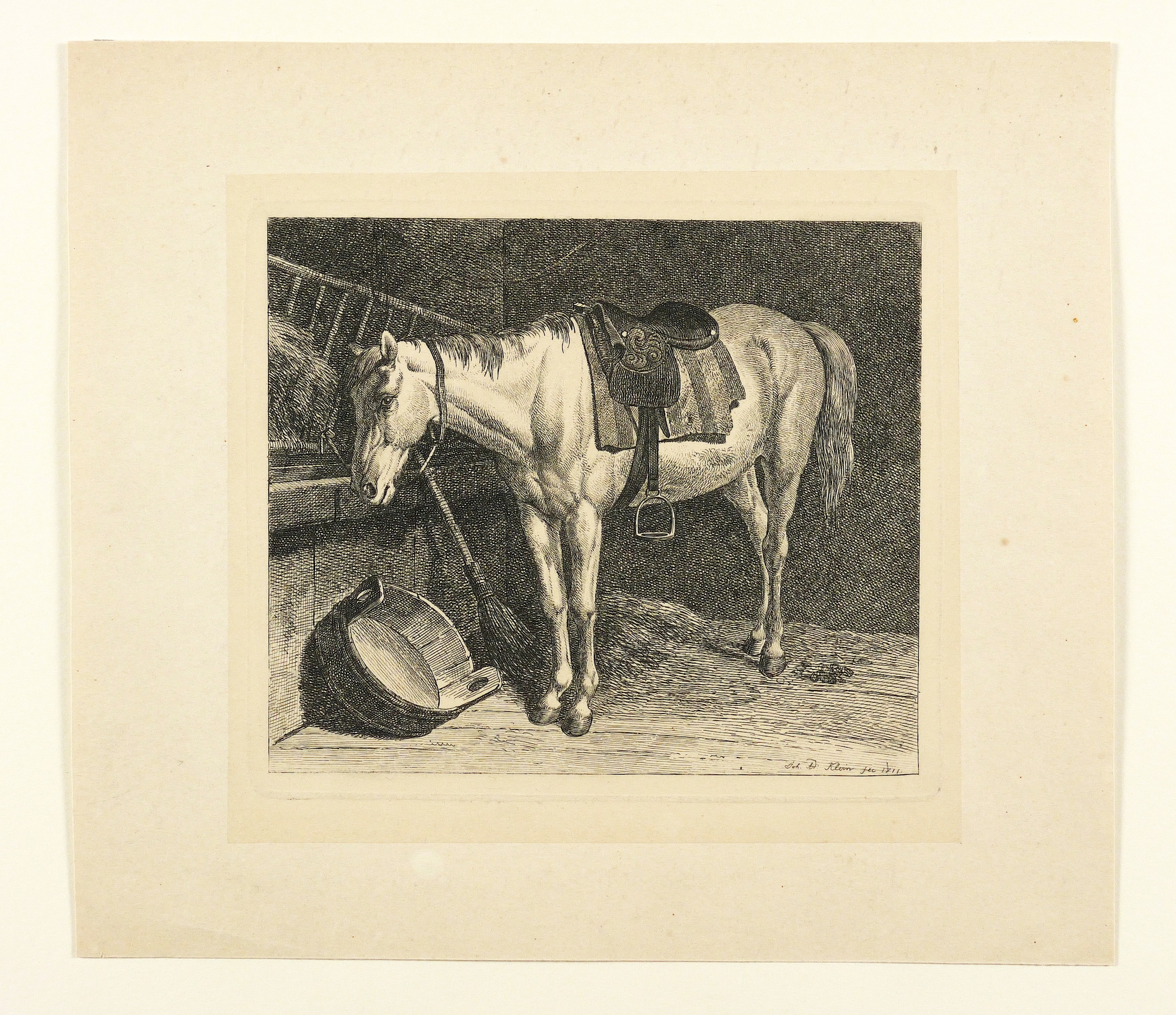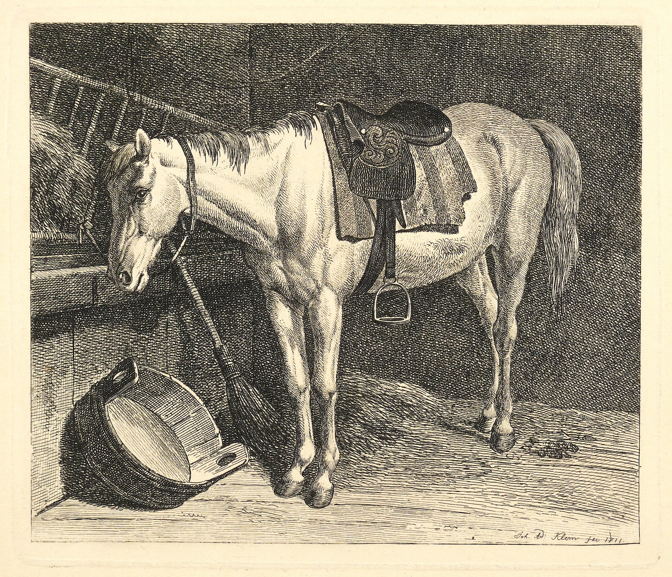 Klein, Johann Adam. – Schimmel. – „Der gesattelte Schimmel im Stall”.