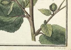 Aus: Friedrich Gottlob Hayne, Getreue Darstellung und Beschreibung der in der Arzneykunde gebräuchlichen Gewächse. wie auch solcher, welche mit ihnen verwechselt werden können (Berlin: Selbstverlag 1805-38), Bd. 1-14. – In der Platte rechts unten signiert: "P. Haas sculp." Unterhalb der Darstellung betitelt. – Blatt mit wenigen Stockflecken. Sonst guter Erhaltungszustand.