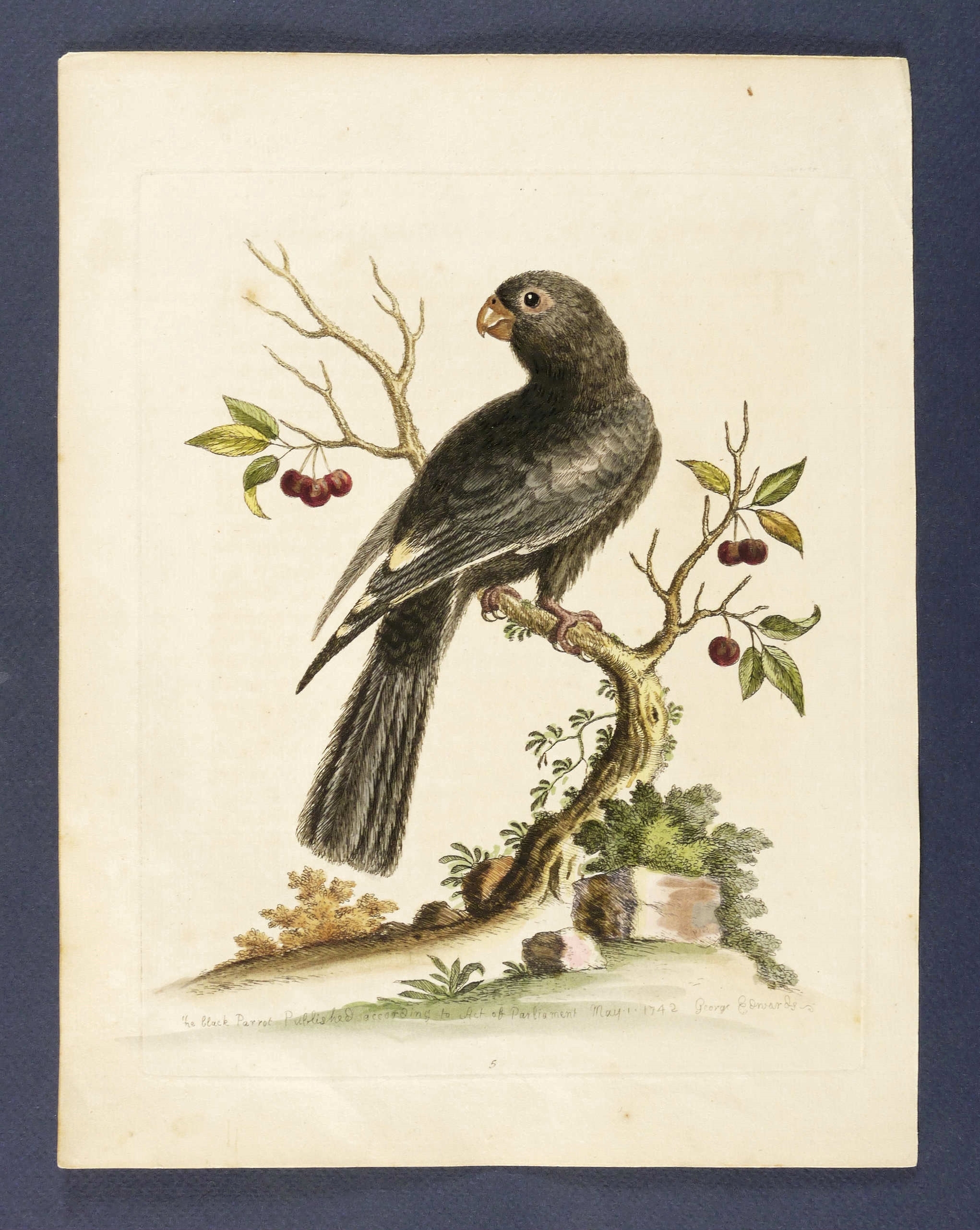 Aus: George Edwards, A natural history of uncommon birds and of some other rare and undescribed animals (London: George Edwards 1743-1751). – In der Platte rechts unten signiert: "George Edwards s." Unten in der Darstellung betitelt, bezeichnet und datiert. Darunter nummeriert: "5". – Papier schwach gebräunt. Obere rechte Ecke leicht angeknickt. Sonst guter Zustand.