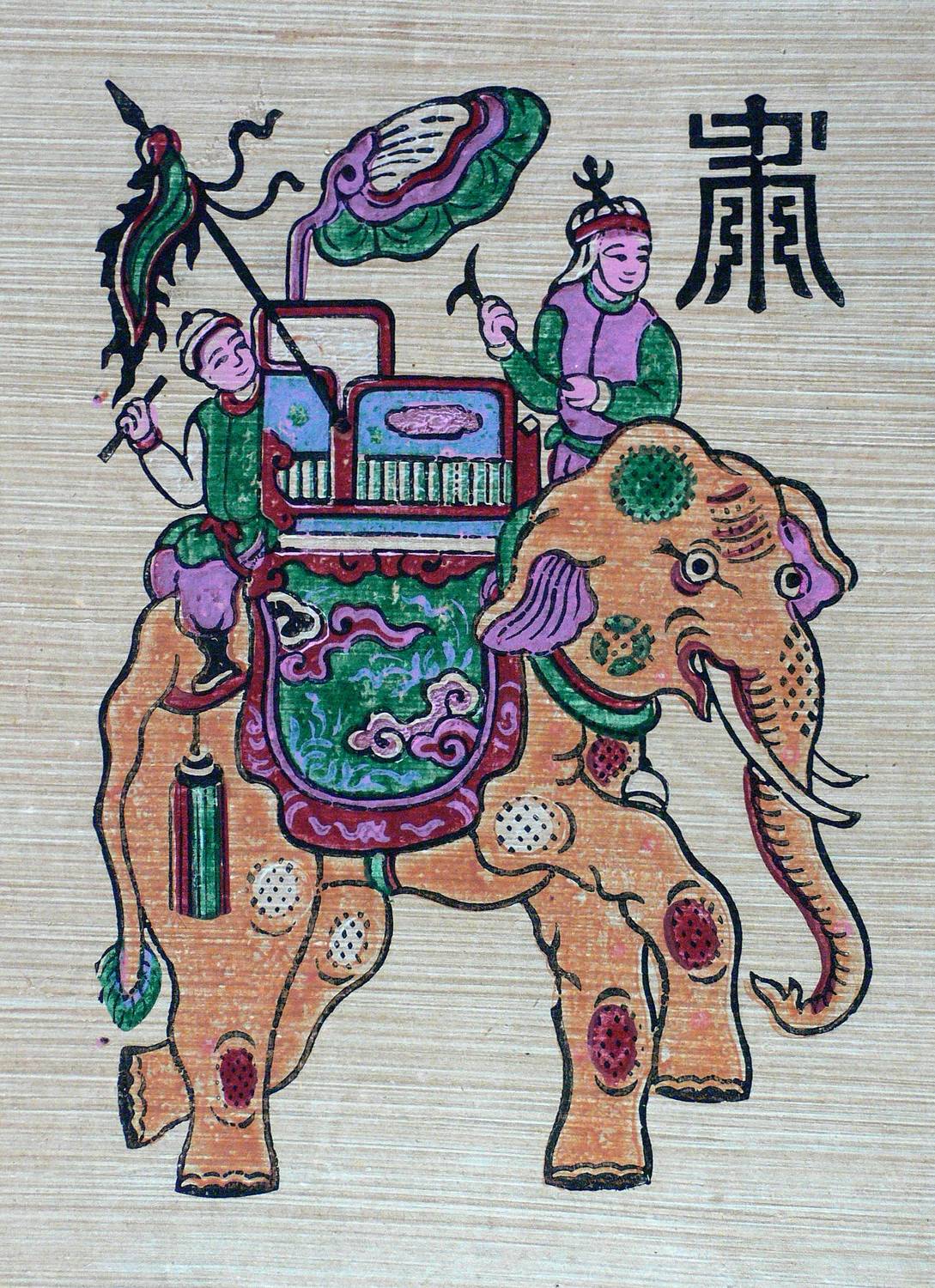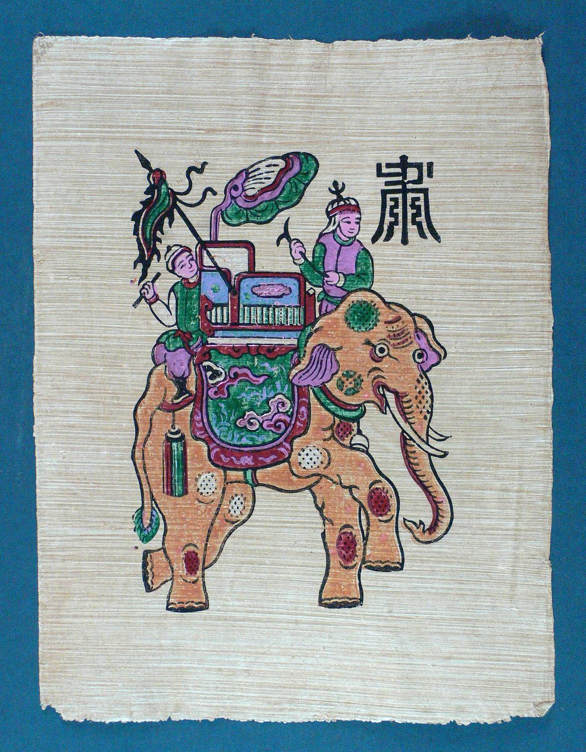 Um 1950. Farbholzschnitt, auf Papyrus. – Originale Künstlergrafik, von Vietnamesisch (20. Jh.). – 23,5 x 16,0 cm (Darstellung), 34 x 26 cm (Blatt).