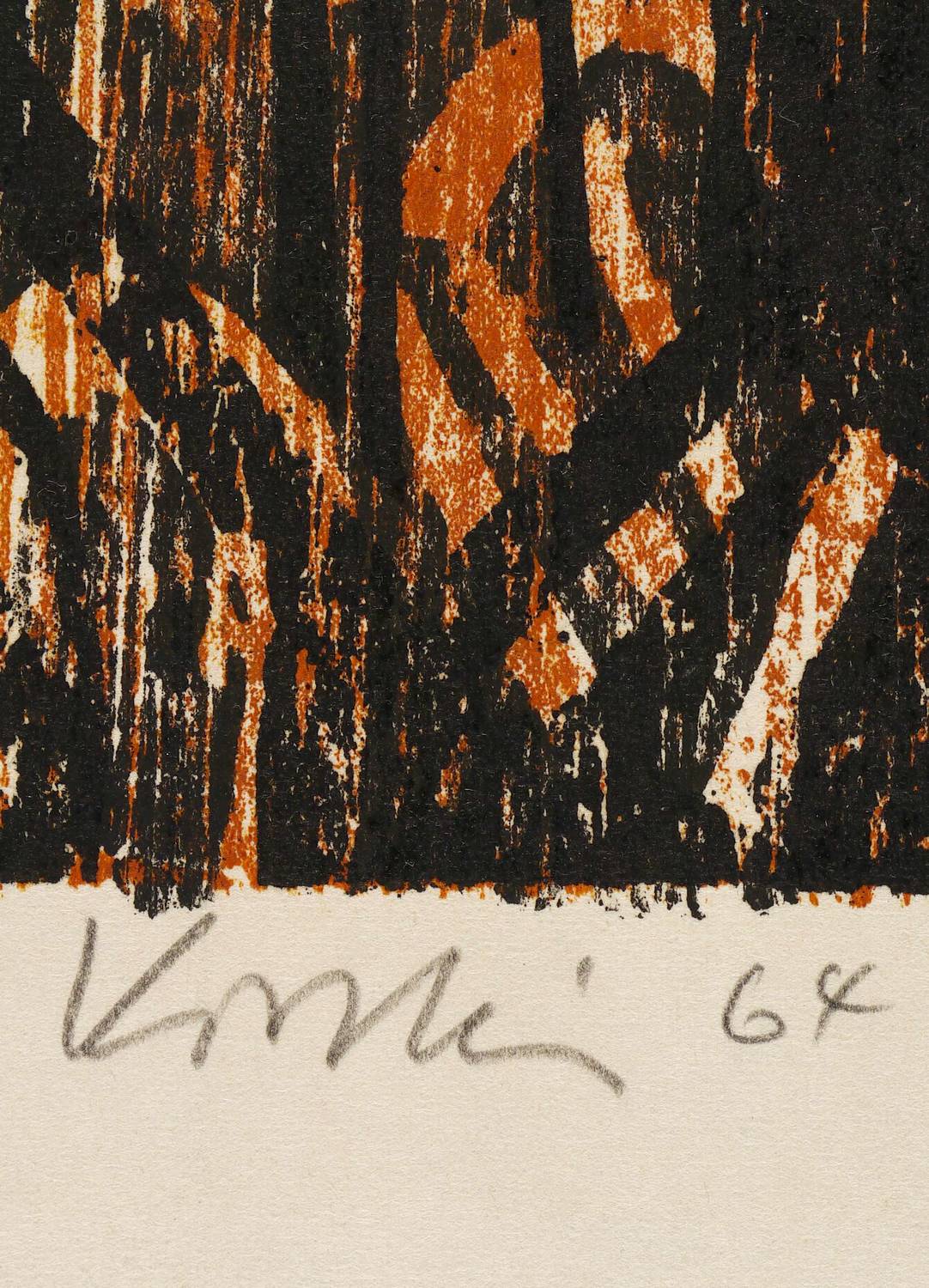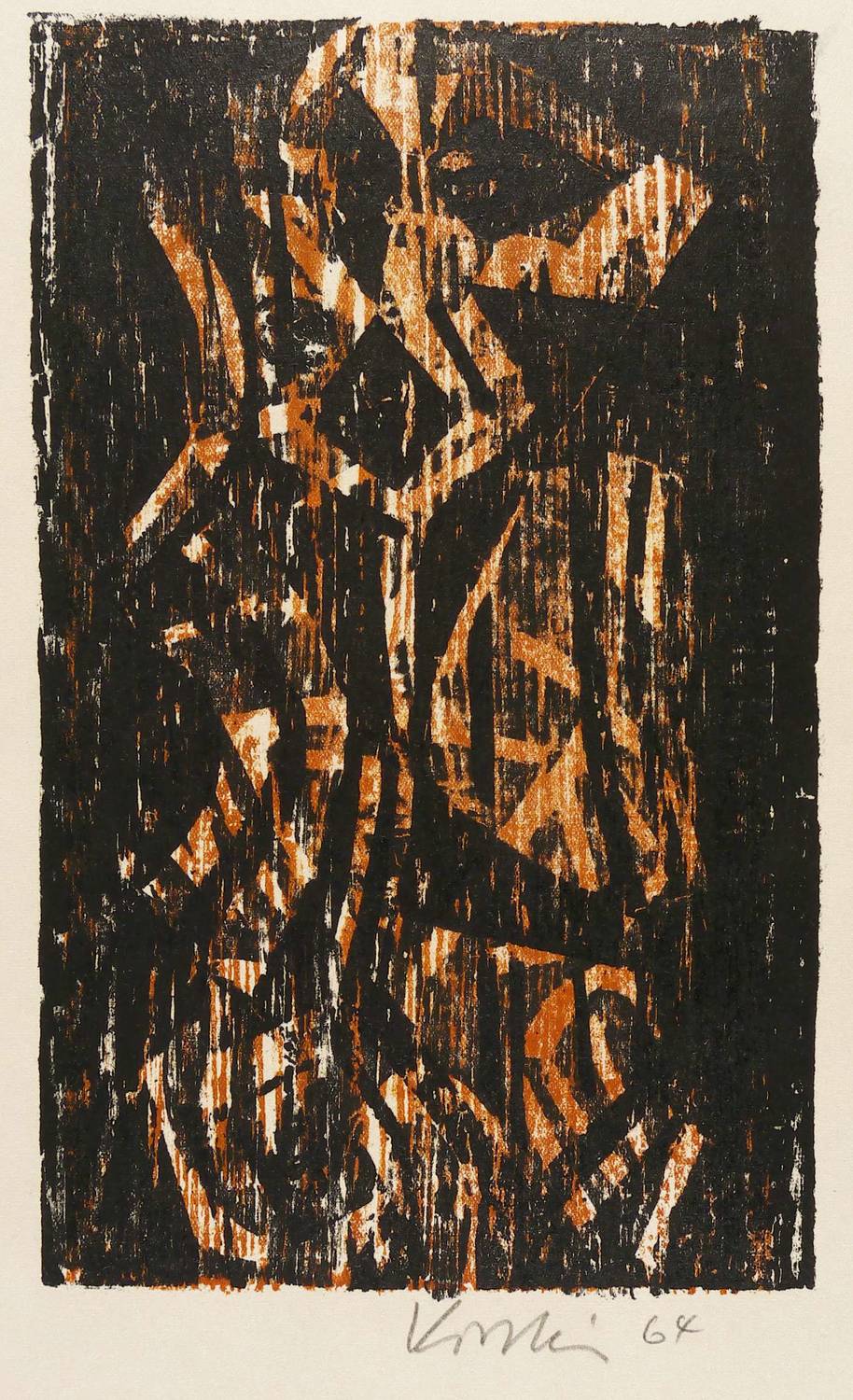 1964. Farbholzschnitt, in Rotbraun & Schwarz, auf hellchamois Velin. – Originale Künstlergrafik, von Helmut Schmidt-Kirstein. – 23,5 x 14,4 cm (Darstellung / Druckstock), 40 x 26 cm (Blatt).