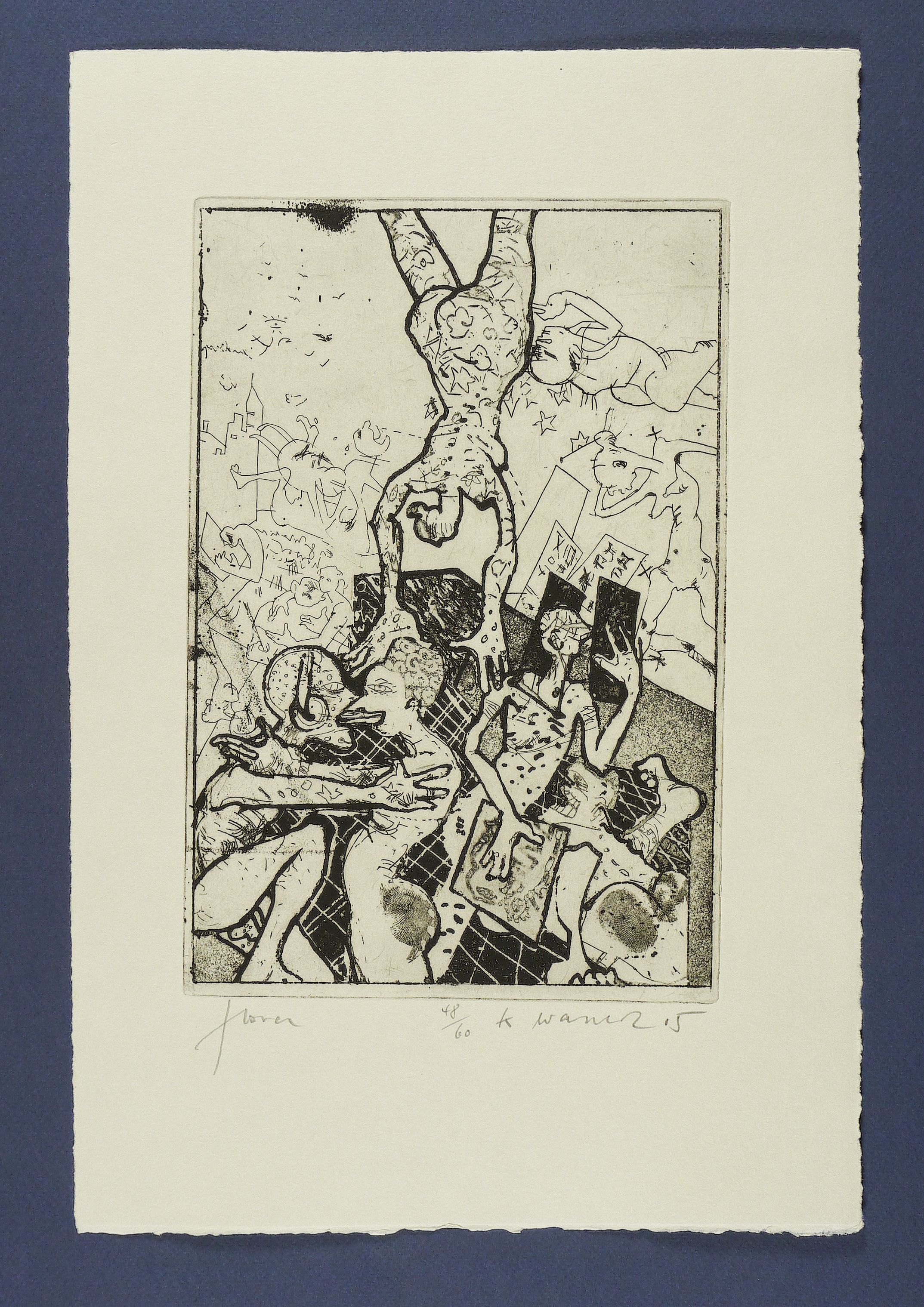 2005. Radierung / Strichätzung, Reservage & Aquatinta, auf hellgrauem Hahnemühle-Bütten. – Originale Künstlergrafik, von Klaus Waschk. – Auflage Exemplar Nr. 48/60. – 26,5 x 18,0 cm (Darstellung / Platte), 39 x 26,5 cm (Blatt).