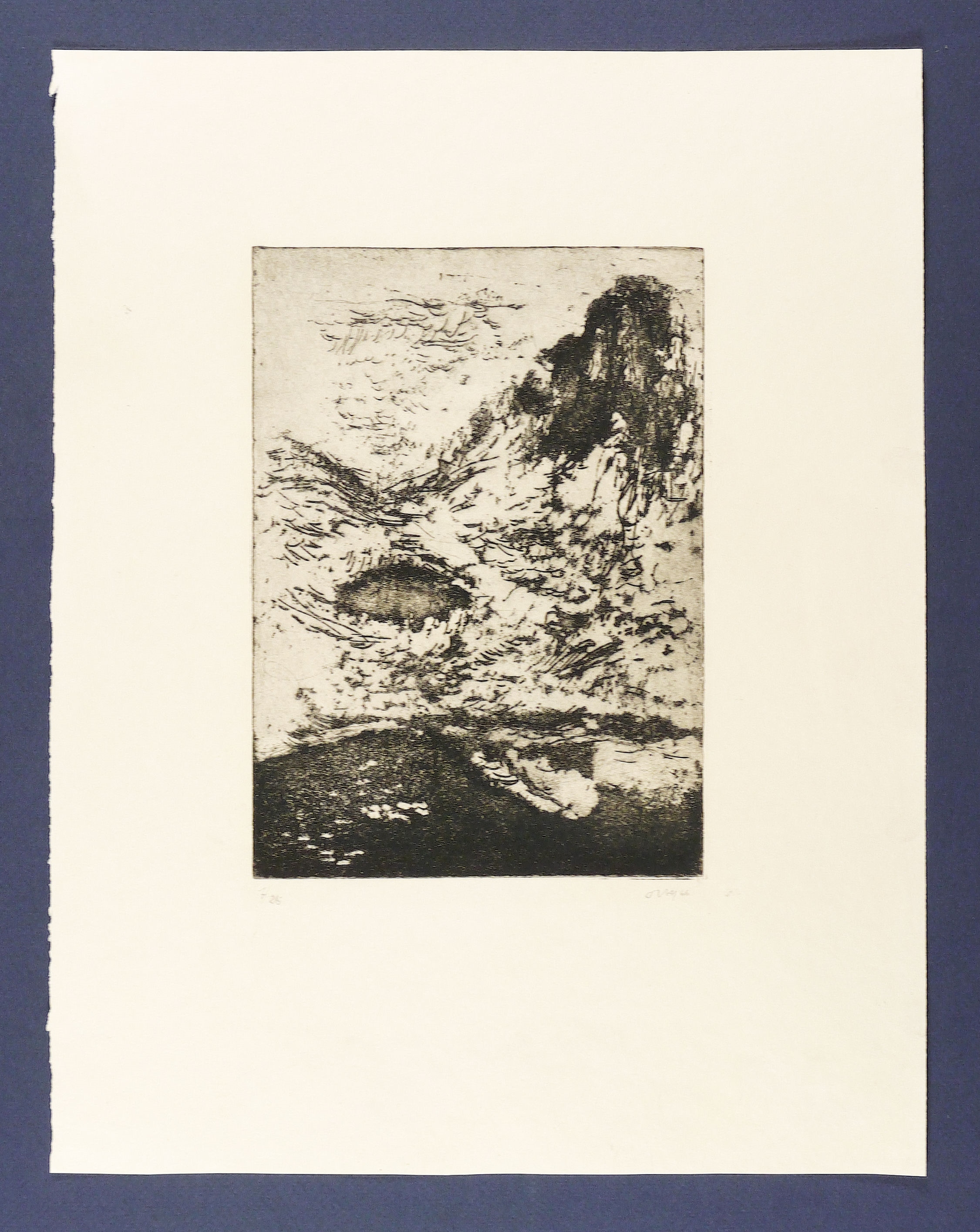 1966. Radierung / Aquatinta & Strichätzung, in Schwarz, auf hellchamois Velin. – Originale Künstlergrafik, von Otto Niemeyer-Holstein. – Auflage Exemplar Nr. 1/25. – 20,8 x 14,9 cm (Darstellung / Platte), 37 x 29 cm (Blatt).