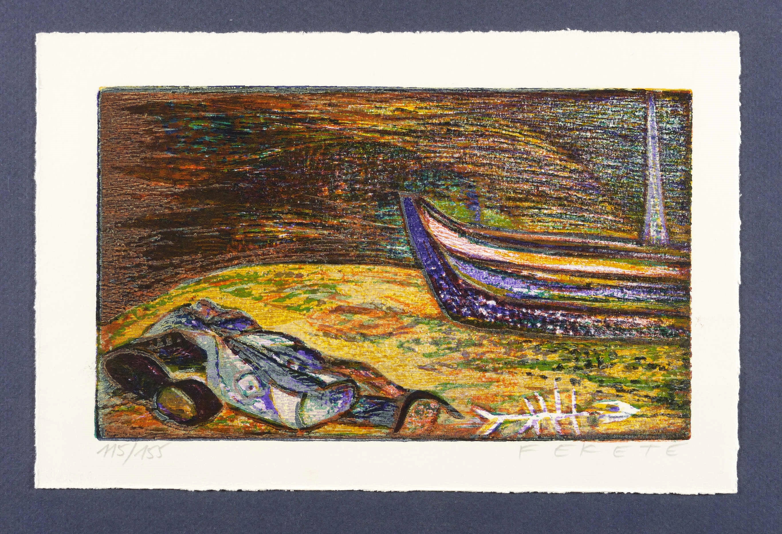 1978. Farbholzschnitt, von 8 Platten, auf weißem Kupferdruckbütten. – Von Esteban Fekete. – Auflage Exemplar Nr. 115/155. – 12,3 x 20,5 cm (Darstellung / Druckstock), 16 x 24 cm (Blatt).