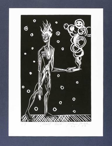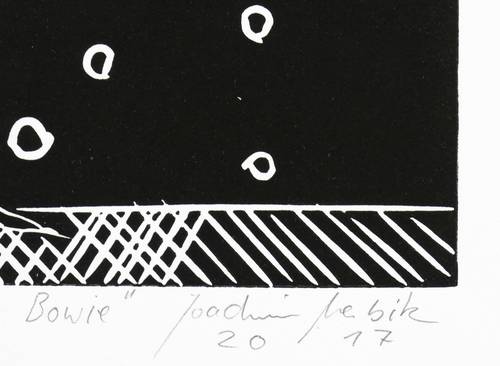2017. Linolschnitt, in Schwarz, auf Hahnemühle-Bütten. – Von Joachim Merbitz. – Auflage Exemplar Nr. 2/5. – 30,5 x 20,1 cm (Darstellung / Platte), 36,5 x 27 cm (Blatt).