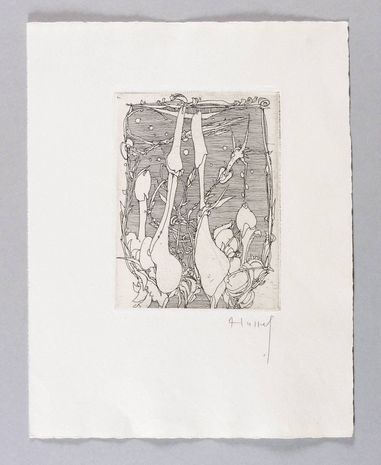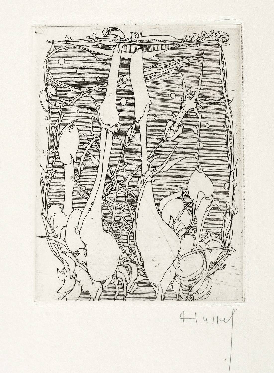 1991. Radierung / Strichätzung, in Schwarz, auf Velin. – Originale Künstlergrafik, von Horst Hussel. – 13,9 x 10,5 cm (Darstellung / Platte), 27 x 21 cm (Blatt).