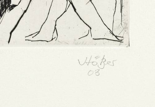 2003. Radierung / Kaltnadel, mit Plattenton, in Schwarz, auf hellchamois Büttenkarton. – Originale Künstlergrafik, von Werner Stötzer. – 8,8 x 11,9 cm (Darstellung / Platte), 39,5 x 26,5 cm (Blatt).