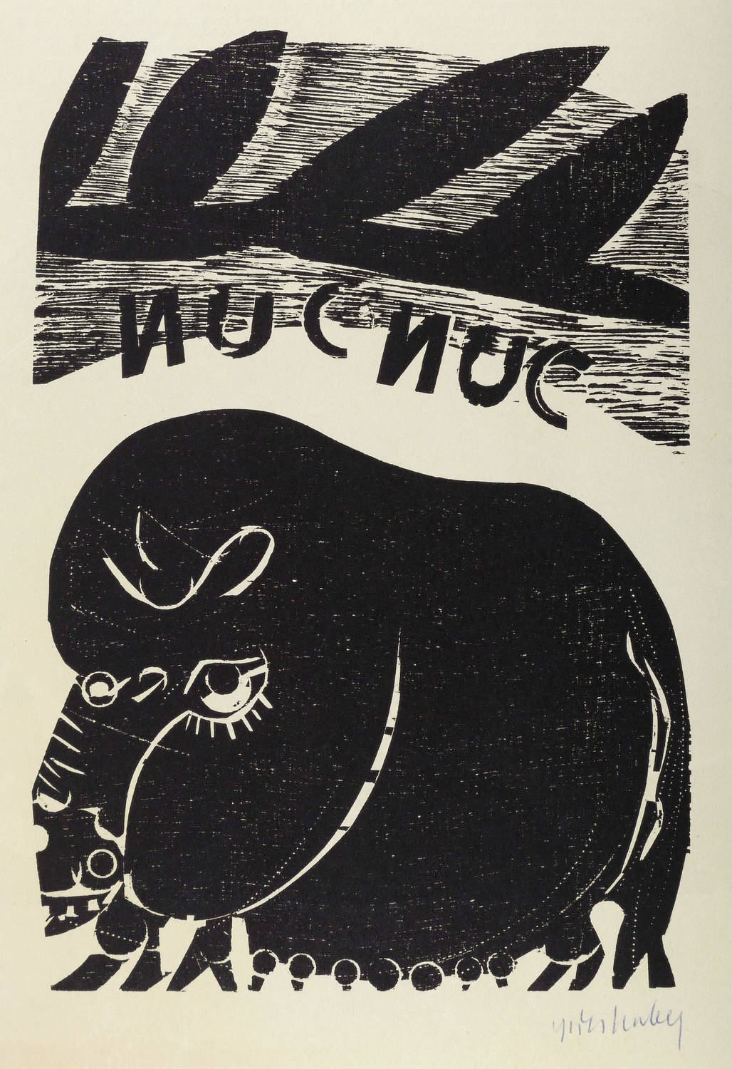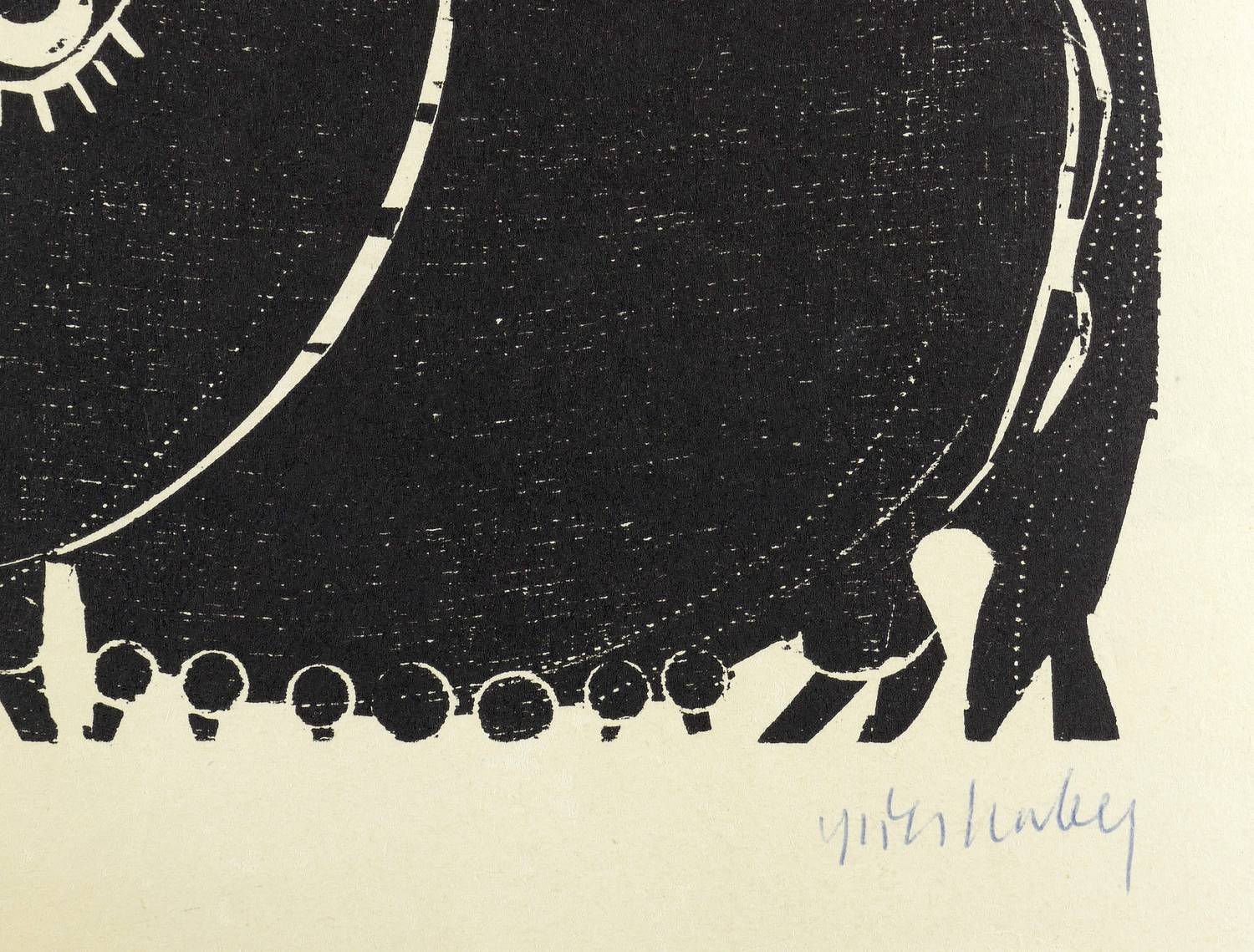 1964. Holzschnitt, in Schwarz, auf gelblichem Werkdruckpapier. – Originale Künstlergrafik, von HAP Grieshaber. – 25,7 x 17,8 cm (Darstellung / Druckbild), 32 x 23 cm (Blatt).