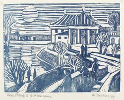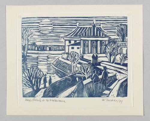 Rechts unten in Bleistift signiert und datiert. Links Titel. – Schönes Blatt. – Original in den oberen Ecken auf Trägerpapier montiert. Sehr schön erhalten.