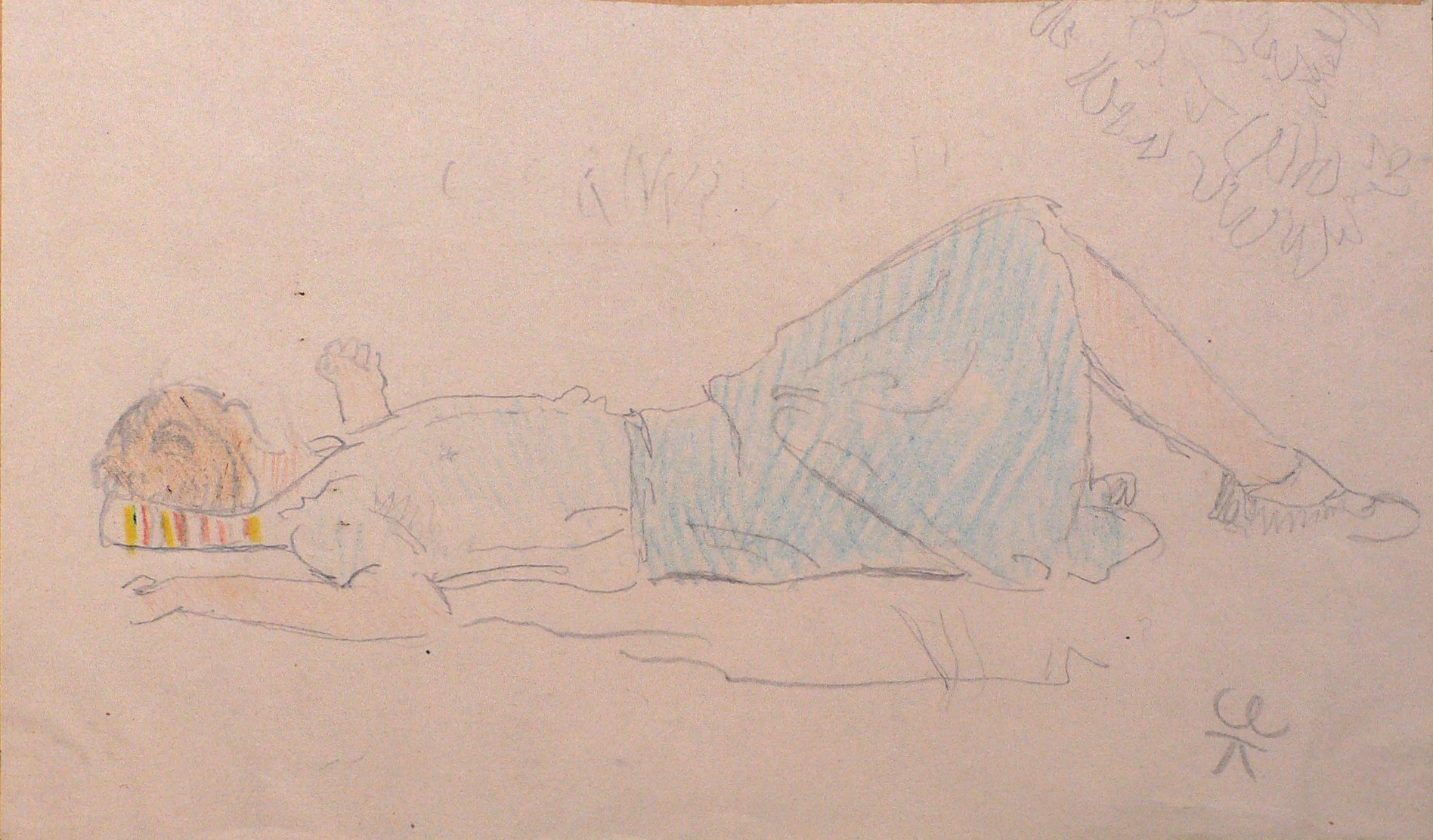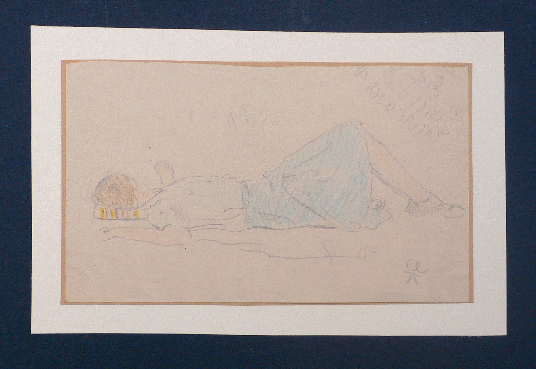 Um 1930. Zeichnung / Bleistift- & Farbstiftzeichnung. – Originale Künstlergrafik, von Karl Enderlein. – Unikat. – 10,0 x 16,8 cm (Darstellung / Blatt), 13 x 20 cm (Trägerblatt).
