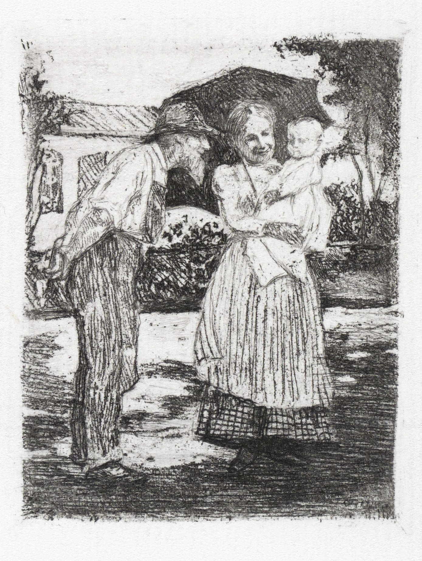 1896/1898. Radierung / Strichätzung & Vernis mou, in Schwarz, auf weißem Büttenpapier. – Originale Künstlergrafik, von Emil Orlik. – 6,6 x 5,1 cm (Darstellung), 7,1 x 5,6 cm (Platte), 8,5 x 6,5 cm (Blatt).