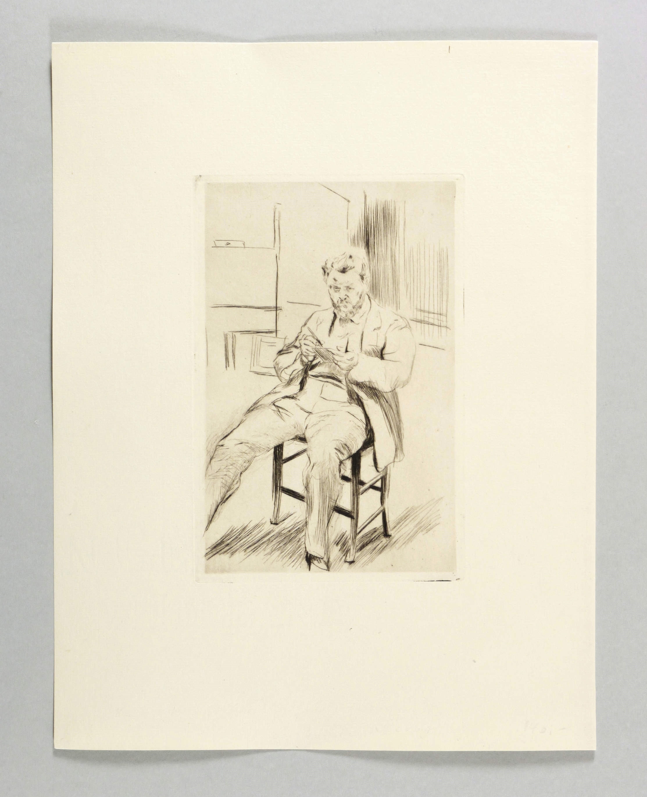 Slevogt, Max. – „Selbstbildnis, im Atelier radierend”.