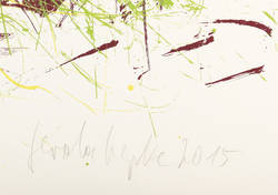 2015. Farbsiebdruck / Farbserigrafie, in Rotbraun, Grün & Gelb, auf weißem Büttenpapier. – Originale Künstlergrafik, von Gerda Lepke. – Auflage Exemplar Nr. VI/VI. – 58,5 x 70,5 cm (Darstellung / Druckbild), 64 x 76,5 cm (Blatt).